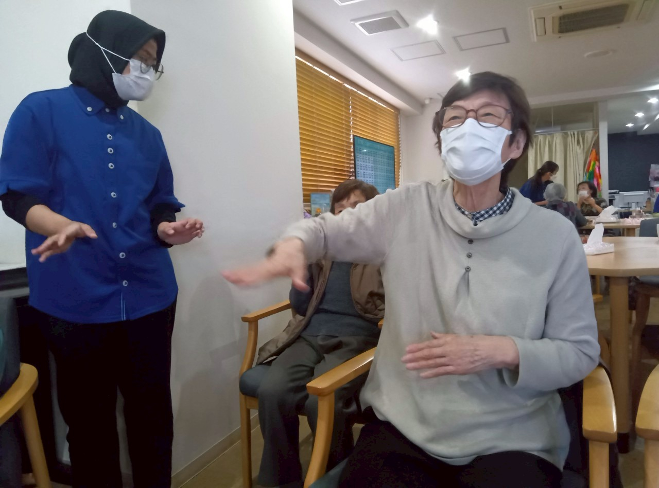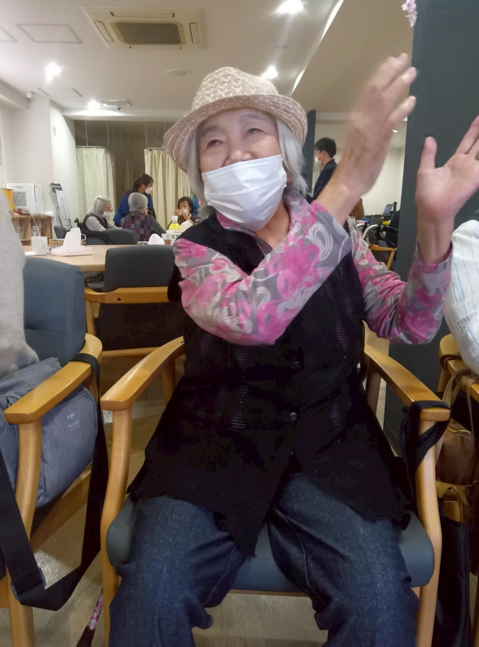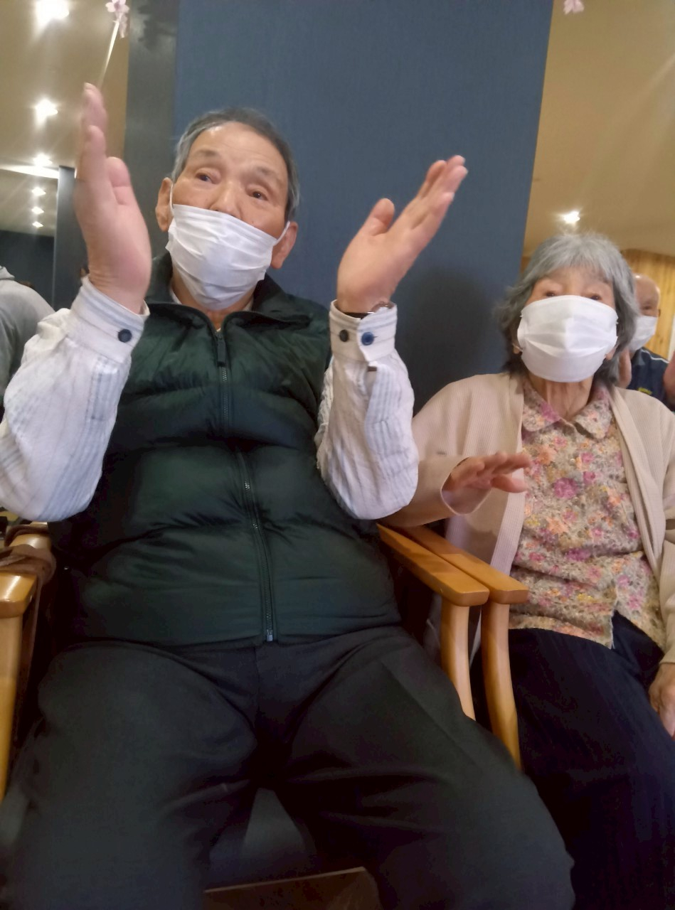 本日は、『ふるさと』、『幸せなら手を叩こう』、『花は咲く』、『上を向いて歩こう』の4曲を、みなさんと一緒に踊ってみました(*^-^*)
