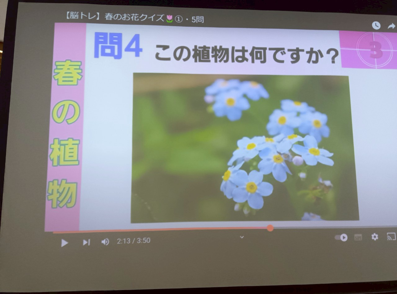 その後は少し時間が余ったので、春のお花クイズを行い、クイズに出てきたお花が食べられるかどうかを調べ、『食べ物に困ったらみなさんと摘んで食べましょうね(*^-^*)』と、お約束した本日のスクリーン前でございました☆