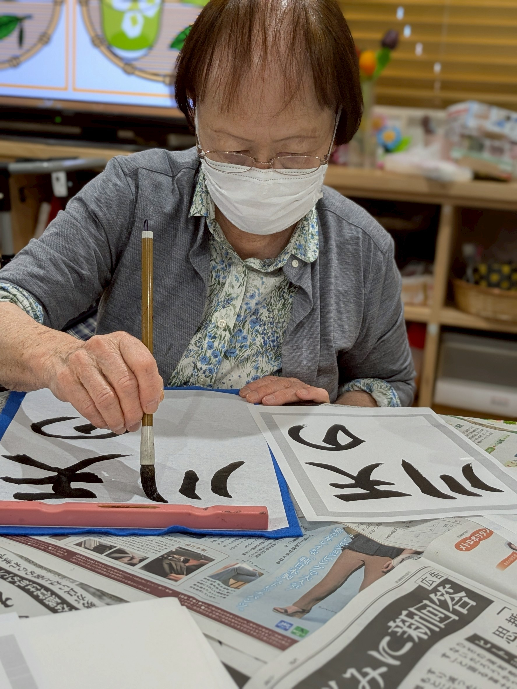 「なんだかうまく書けないわ」と何枚も練習され、満足のいく書が書けたときの