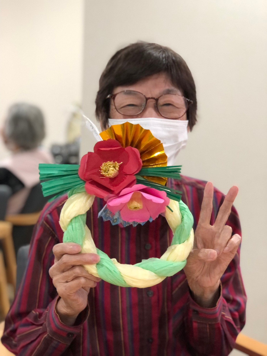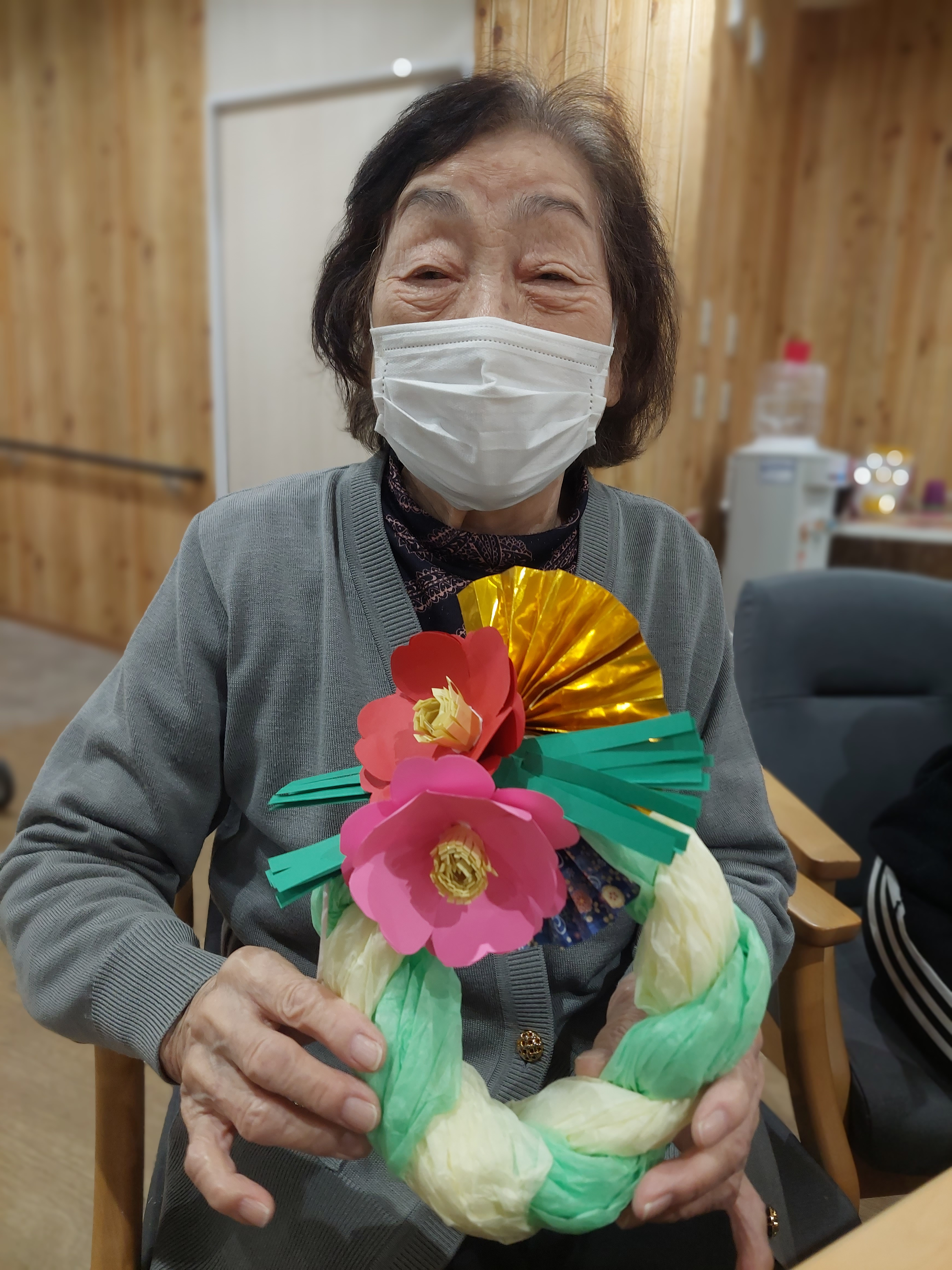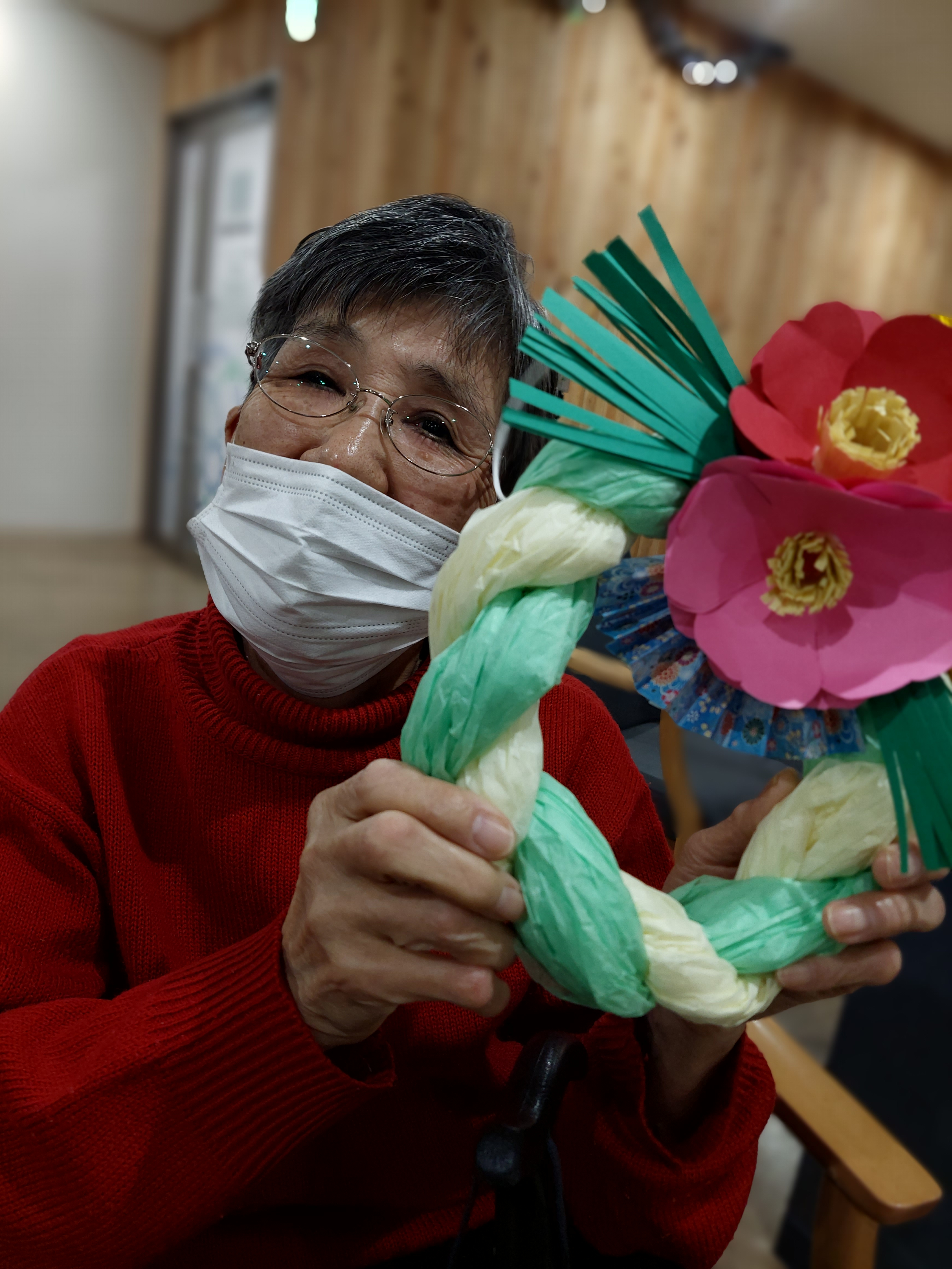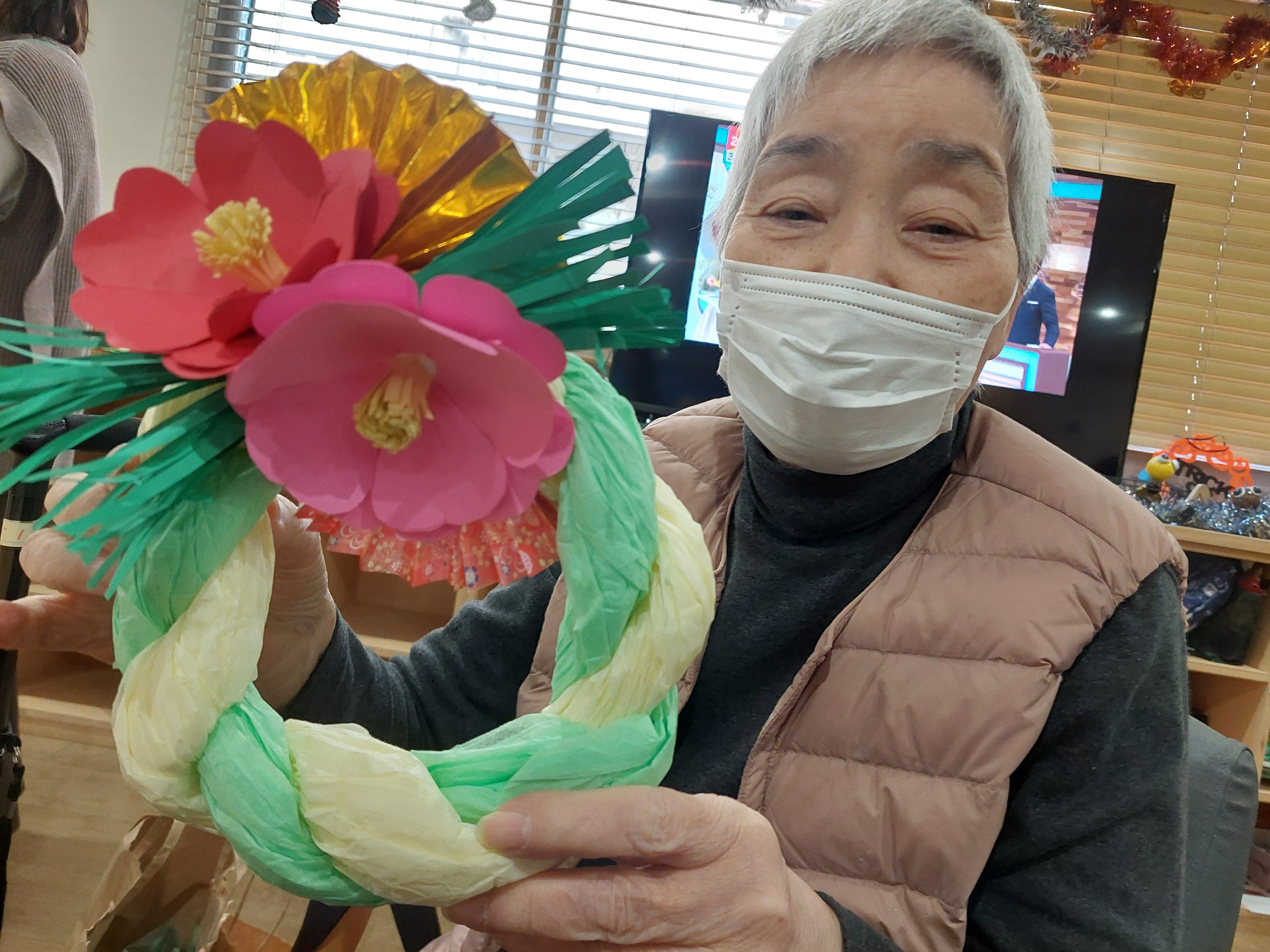 12月の手芸チームは、クリスマスリースと並行して、しめ縄作りに励まれていました♪