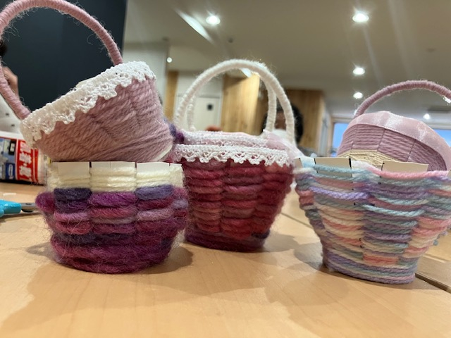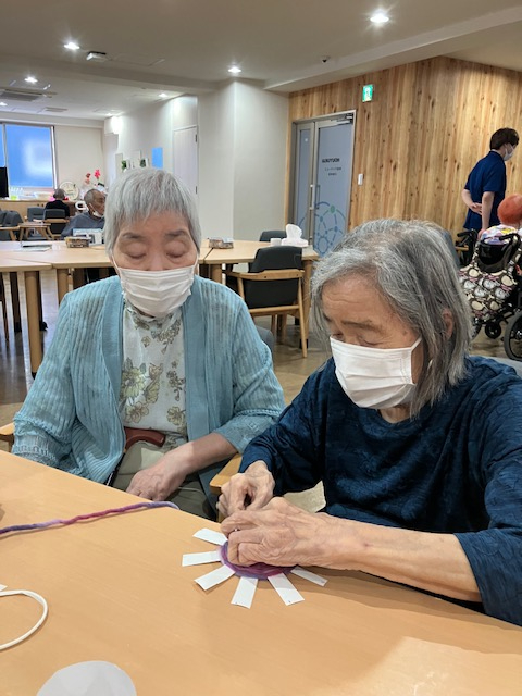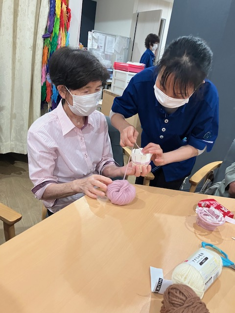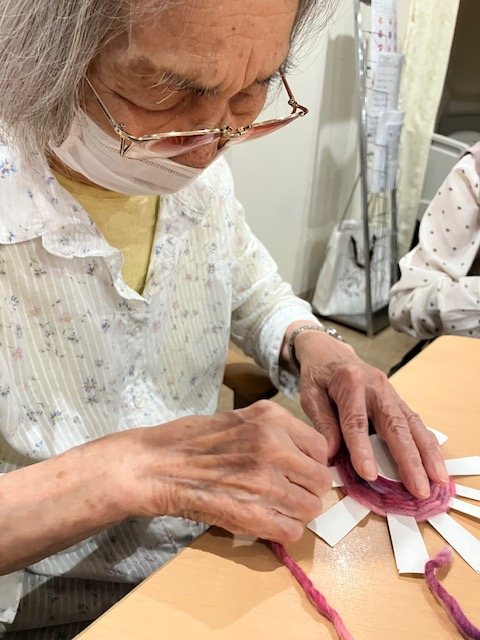 お隣同士で毛糸の色が素敵✨となったペアでは・・・気付いたら毛糸の色がトレード!!
