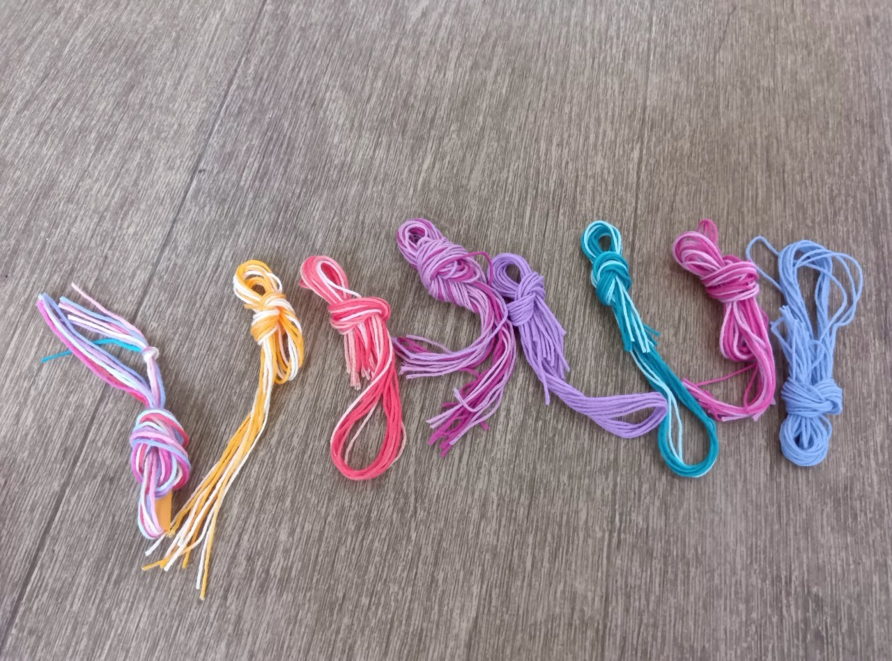この綺麗な刺繍糸を使って、前回みなさんが作ってみたいとおっしゃっていた『ストローを使って編むミサンガ』を作りました(*^-^*)・・・・・・・・・