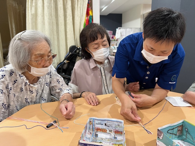 やっていることはとても簡単なのですが、細かいのと、ストローの入っていた穴に糸を通すのが難しく、苦戦されるみなさん(;^_^A