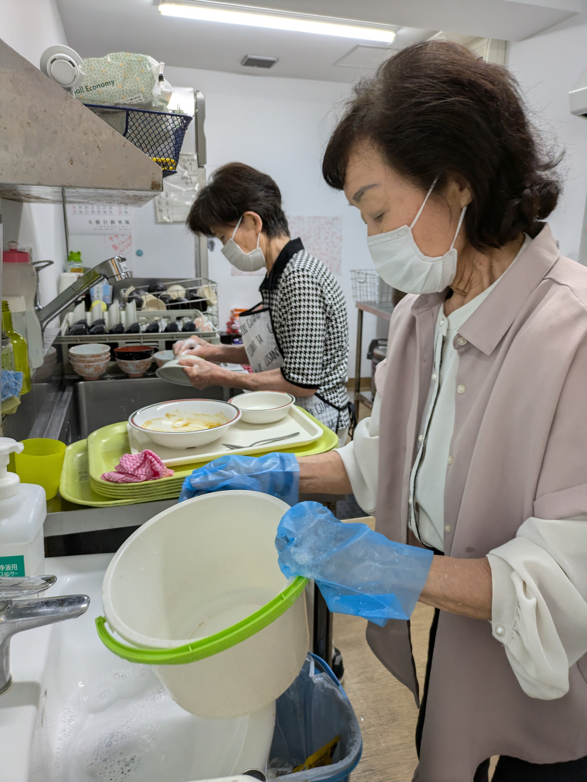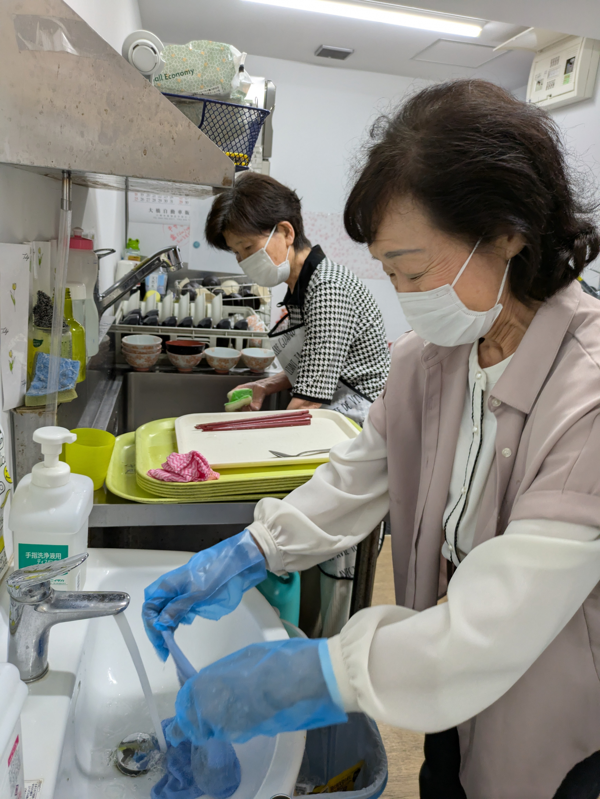 デイにお越しの際は、口腔ケアが終わると厨房に来て下さる方、洗ってあげるわよ、なにか手伝うわよ、