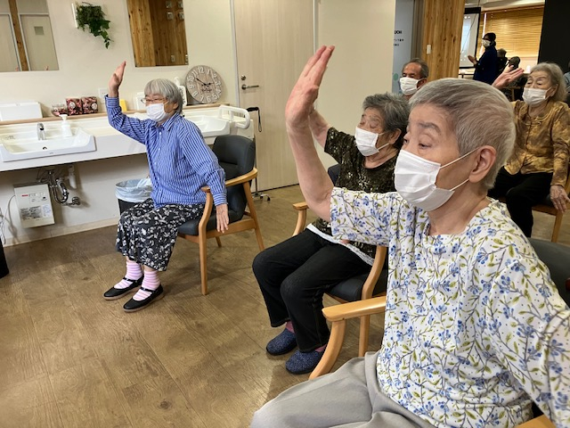 頭から足先まで痛みのない範囲でじんわり伸ばし伸ばし、ちょこっと指をつかった脳トレも行ったり・・・
