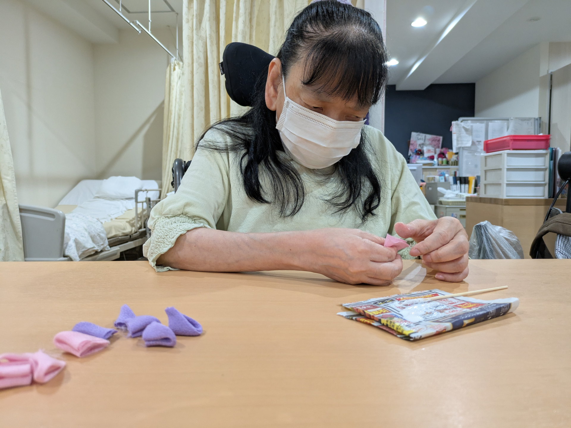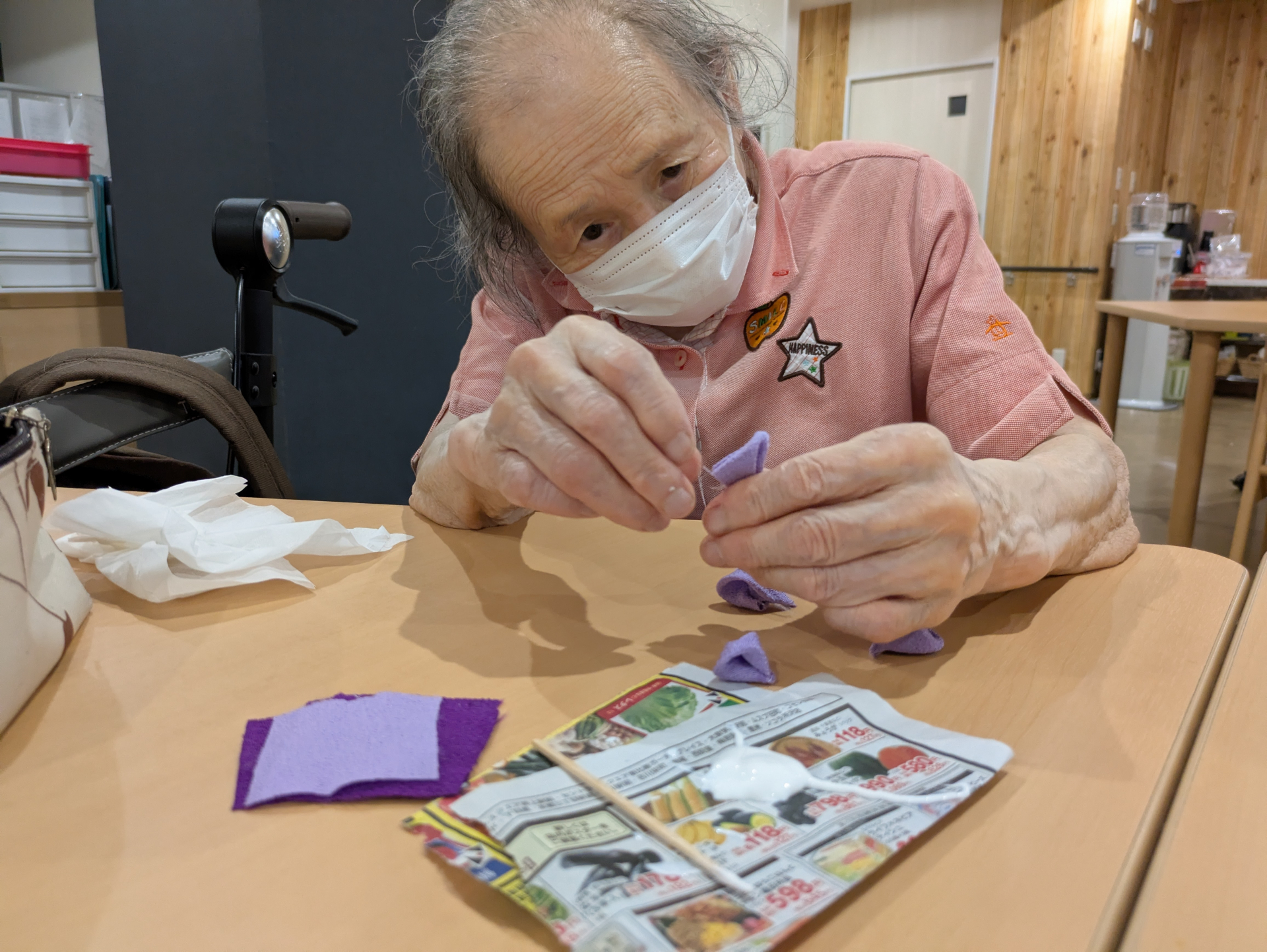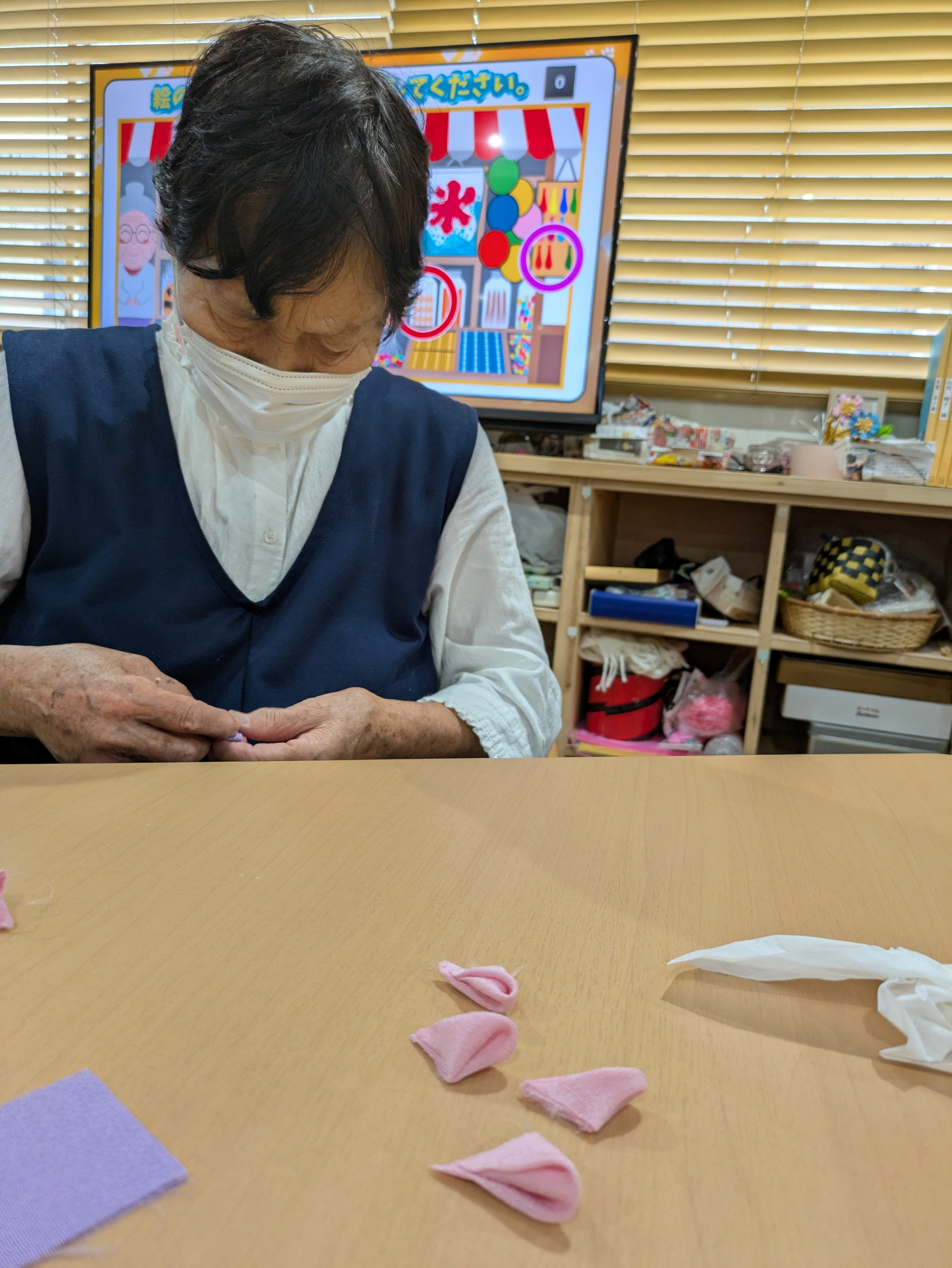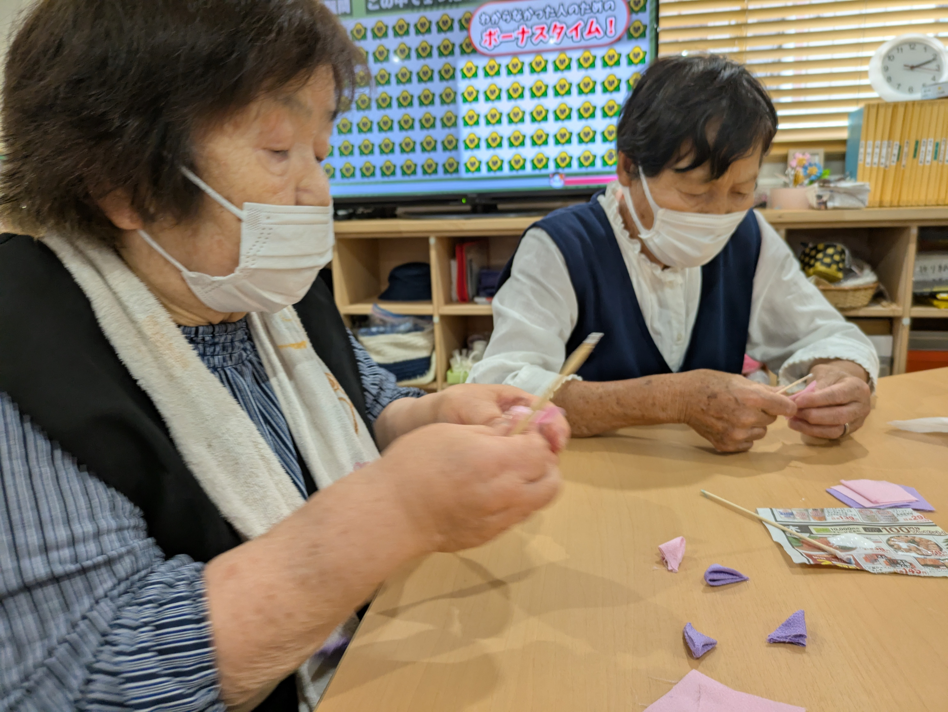 紫陽花よりは大きめの布ですが、それでも折るのはね・・・細かくて大変です