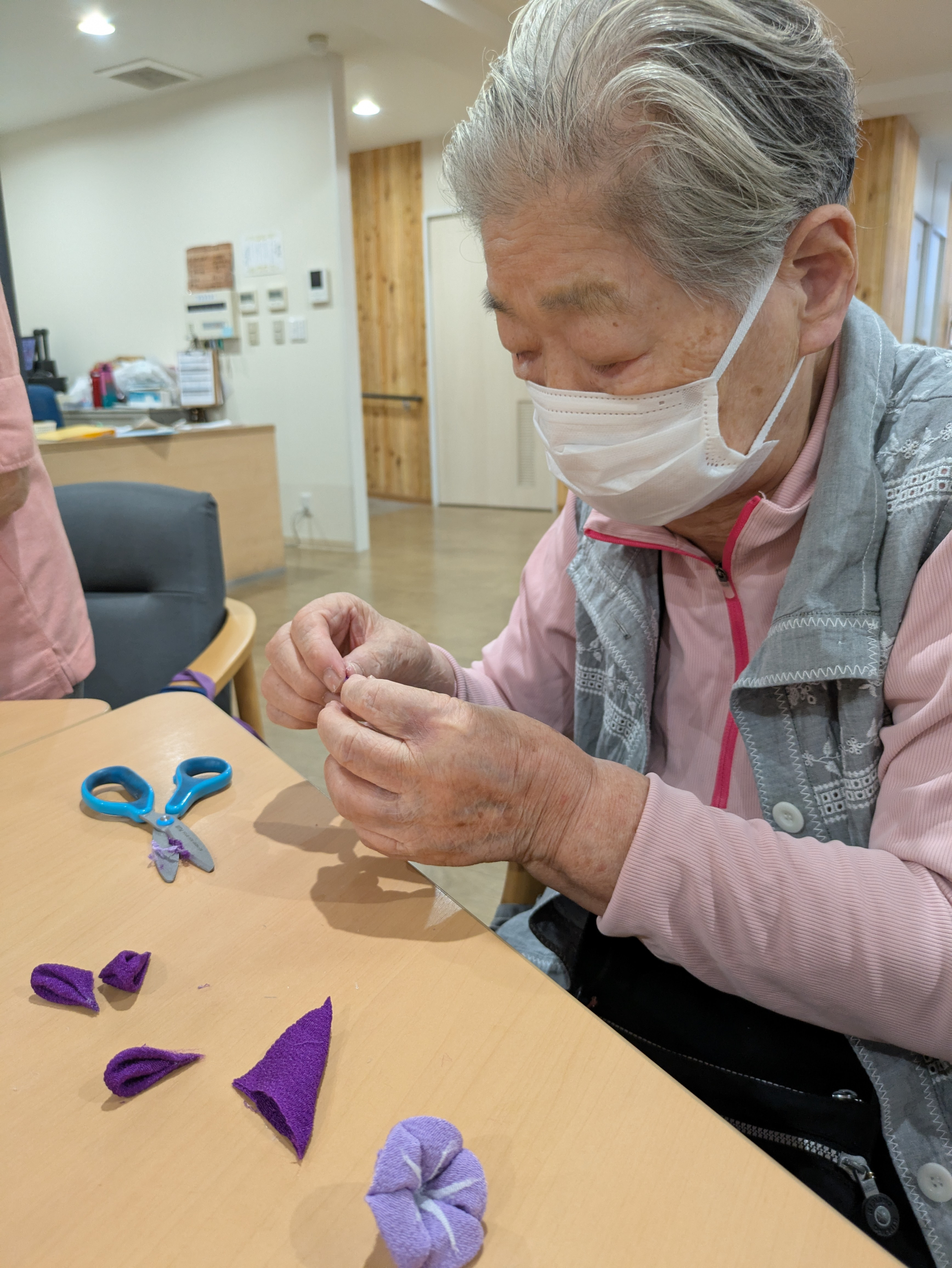 紫陽花よりは大きめの布ですが、それでも折るのはね・・・細かくて大変です
