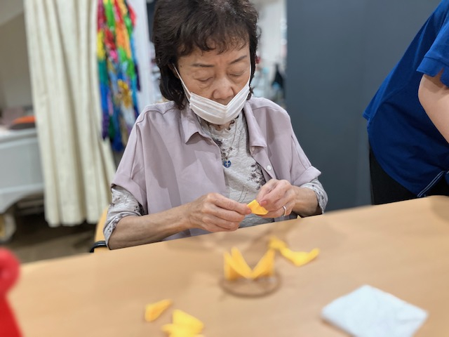 ひまわり製作では、「並べるのが難しいな」と話しながらも集中されています!
