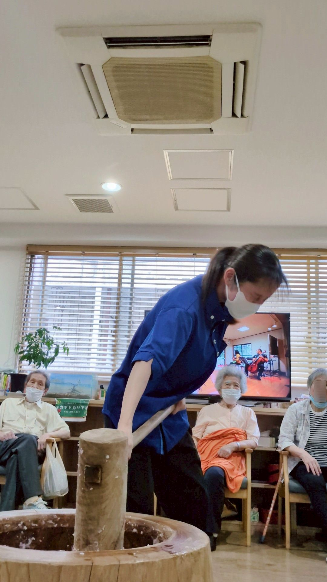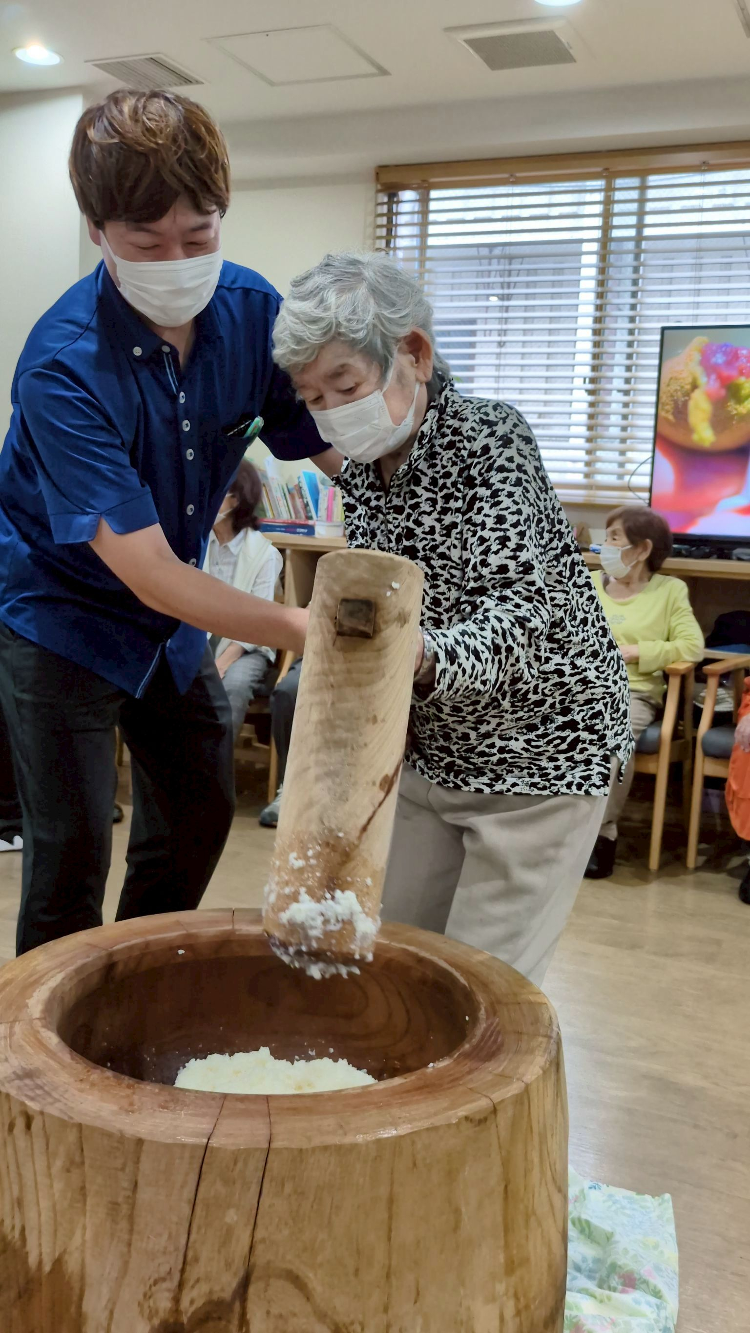 慣れた手付きで杵をリズミカルに動かし、リズミカルに臼を周り潰してくださる方♪