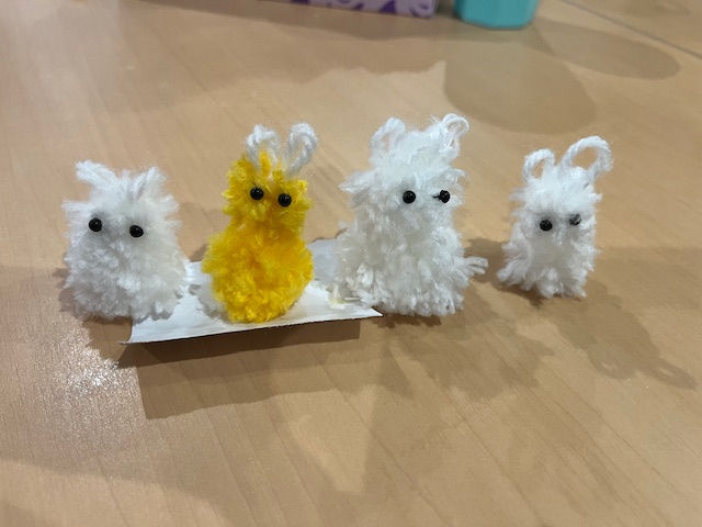 毛糸の切り方や目の位置などで雰囲気が違って同じうさぎにはならないのがいいところですね(*´ω`*)