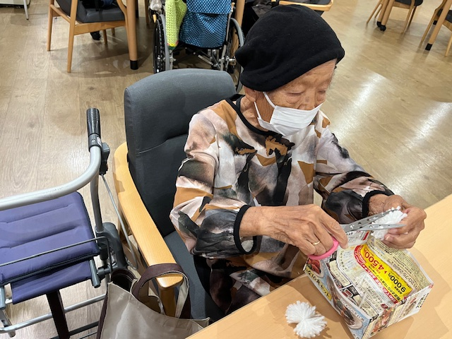 ひたすら巻いて、真ん中から糸を通してしっかり結ぶことできれいに丸くなっていきます!