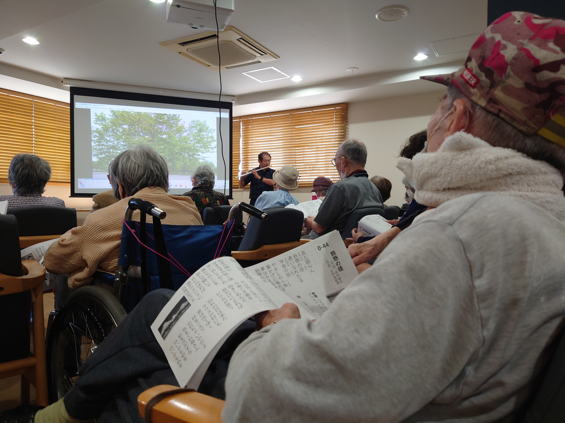 「今日はフルートの生演奏です!」とお誘いすると「お!見てみよう!」と