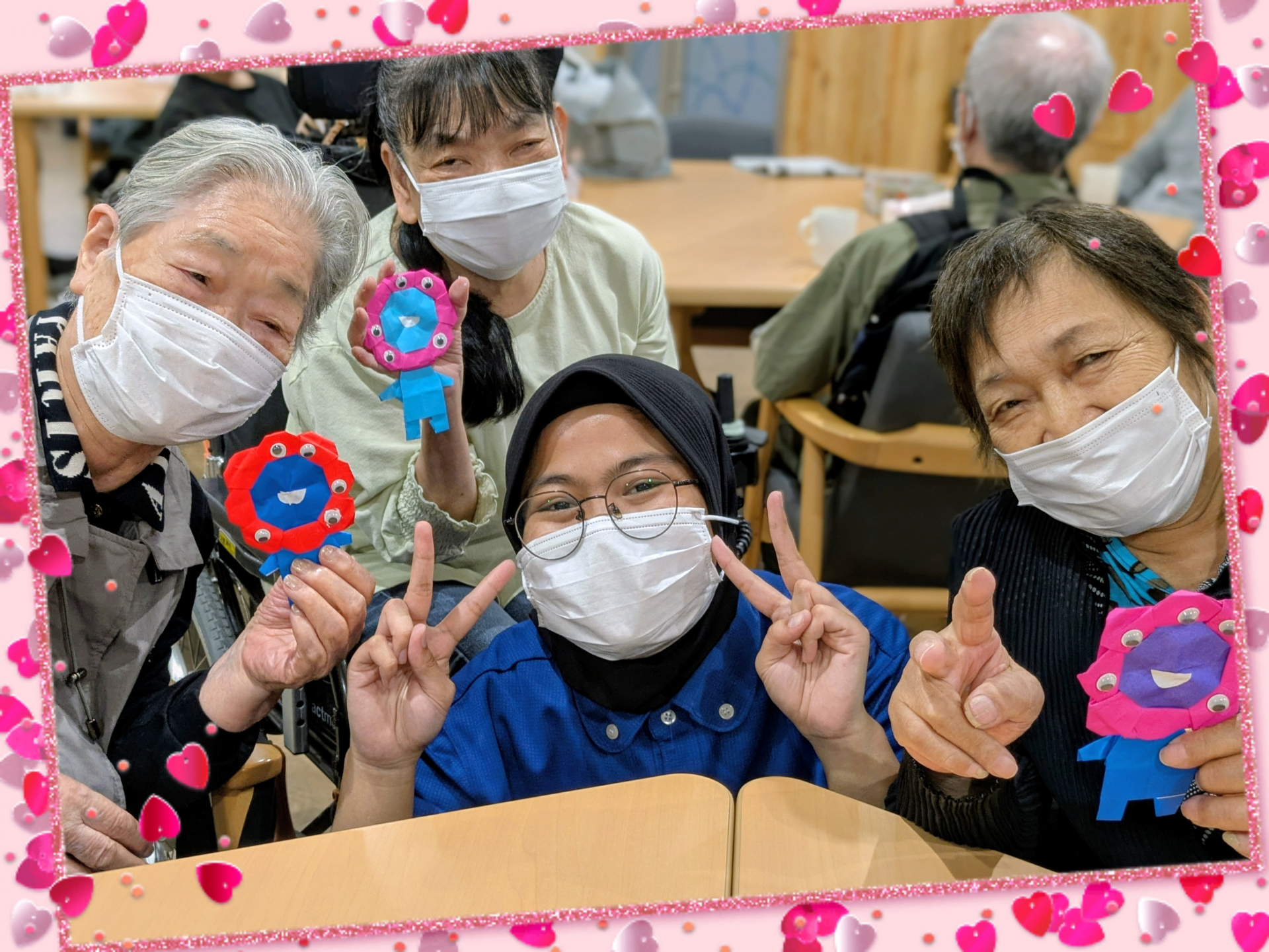 今日は折り紙を作りました。でも、折り紙を作る前に、みんなさんは何を作ると言われていました。