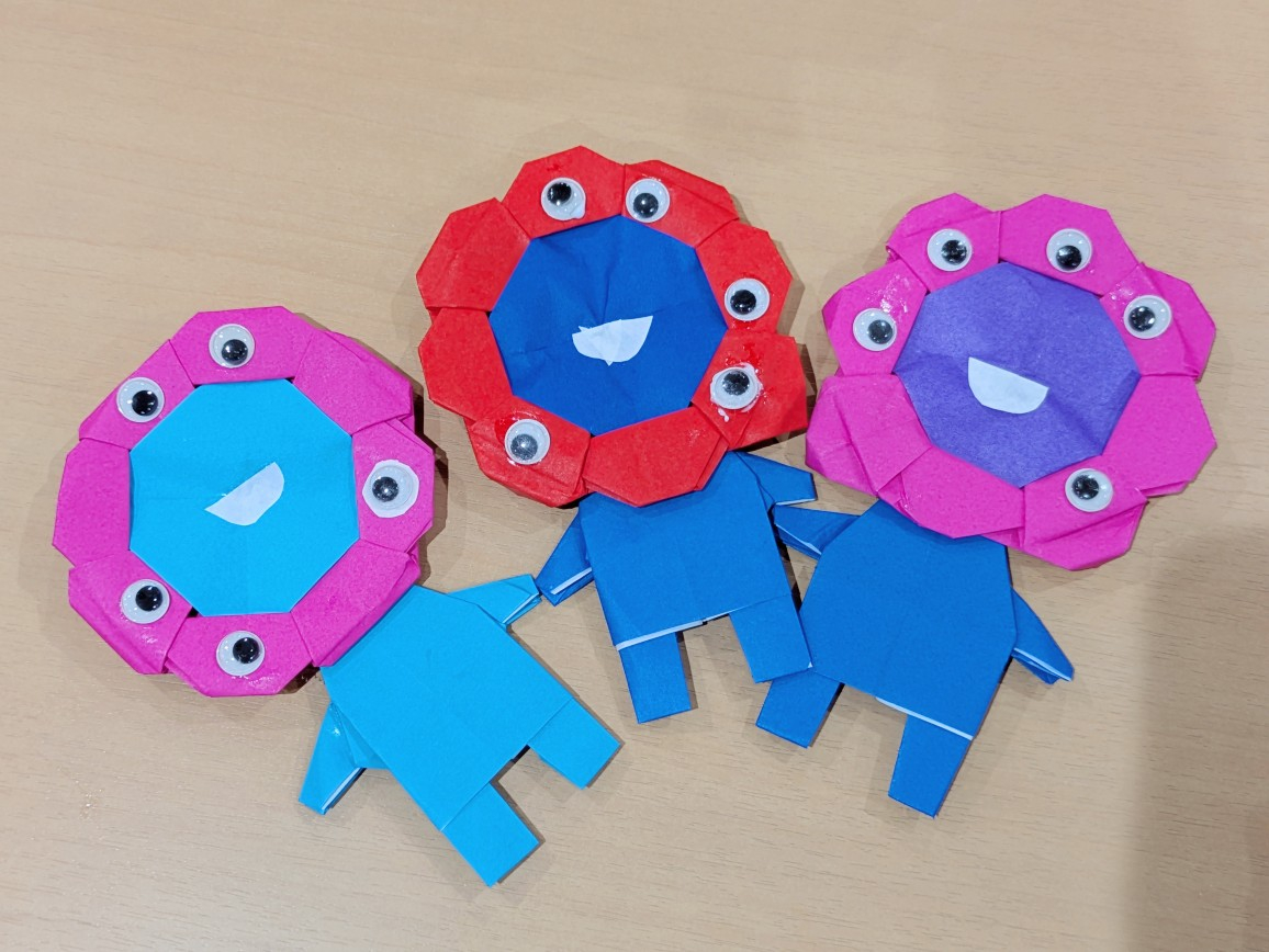 そして、Sさんと一緒にyoutubeで見ながら、何を作ります。Sさんはミャクミャクを選びました。なぜ、ミャクミャクを選んだ?ミャクミャクは2025年万博の公式キャラクター。ミャクミャクは世界で有名と可愛いと思います。