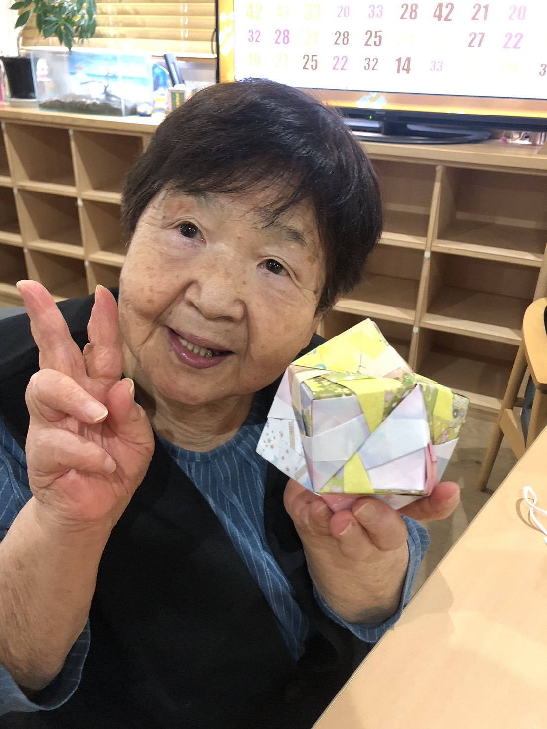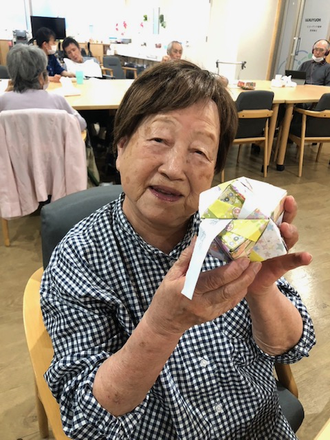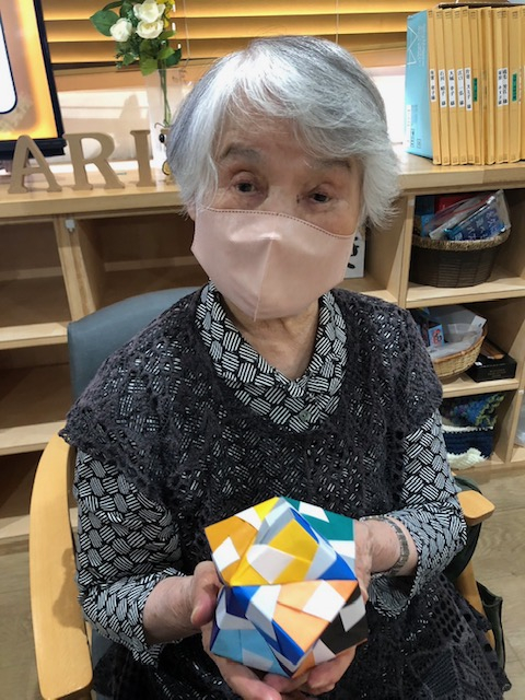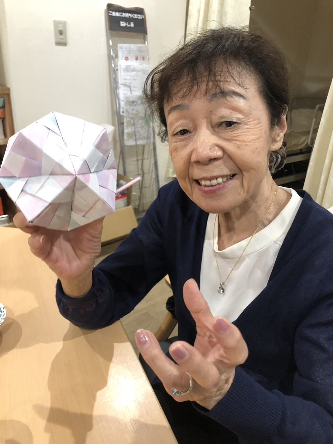 今日、有馬デイに午後のレクリエーションは折り紙です。折り紙で正ニ十四面を12枚使いました。