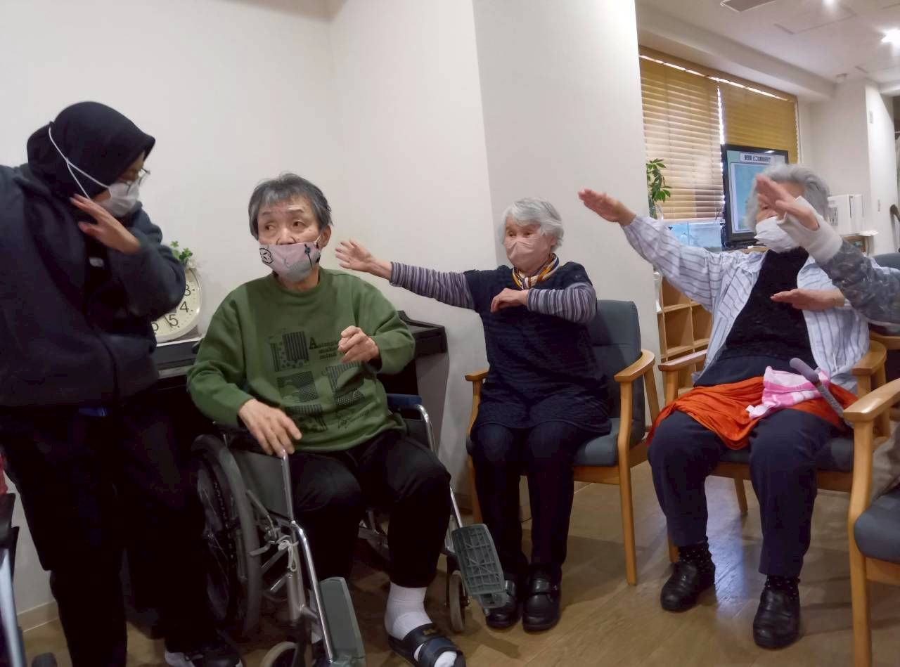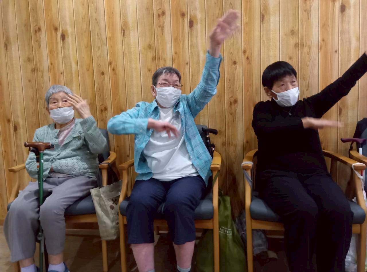 本日は、『ダンシングヒーロー』と『真っ赤な太陽』の2曲に合わせてダンス体操を行いました☆