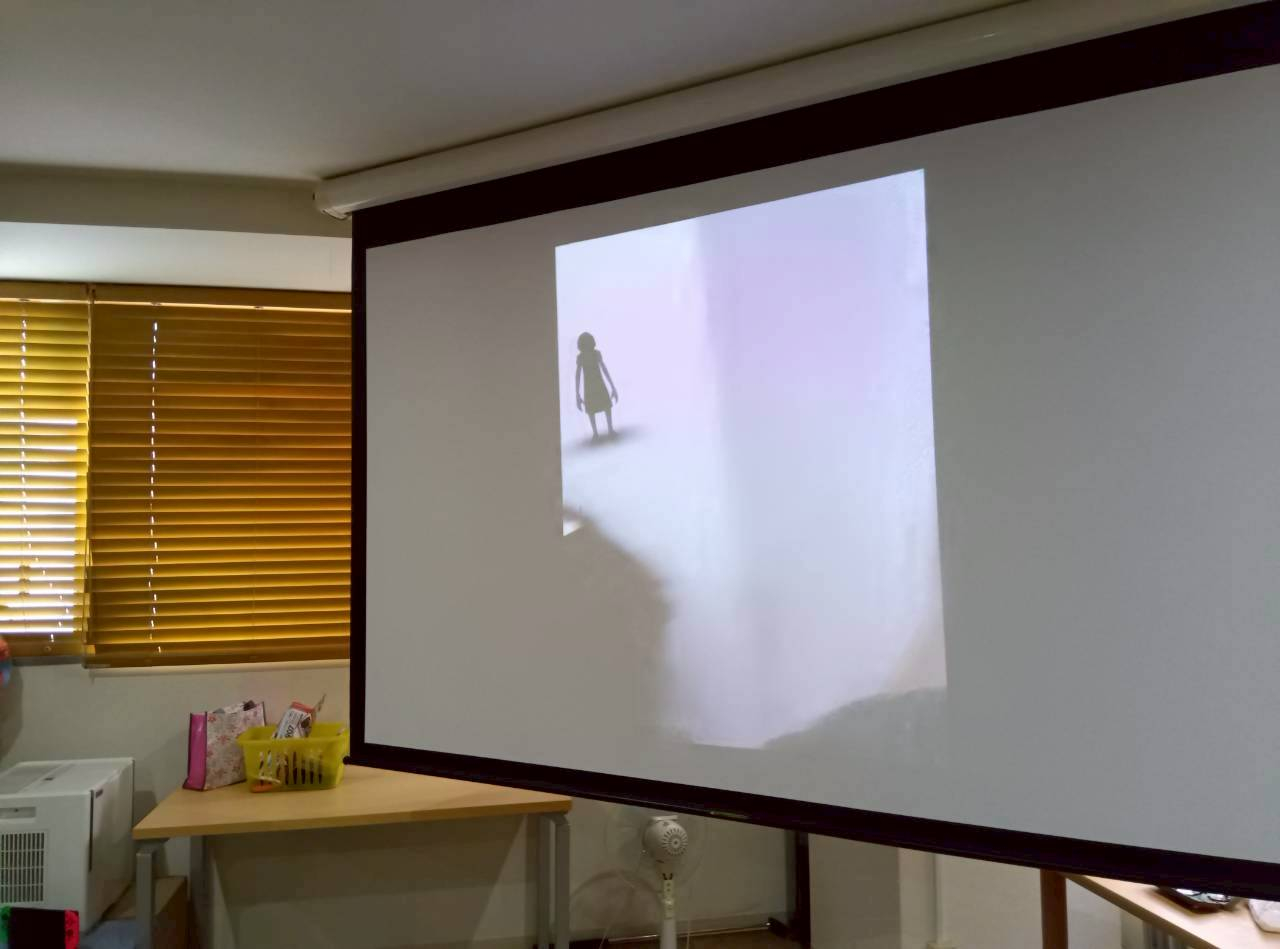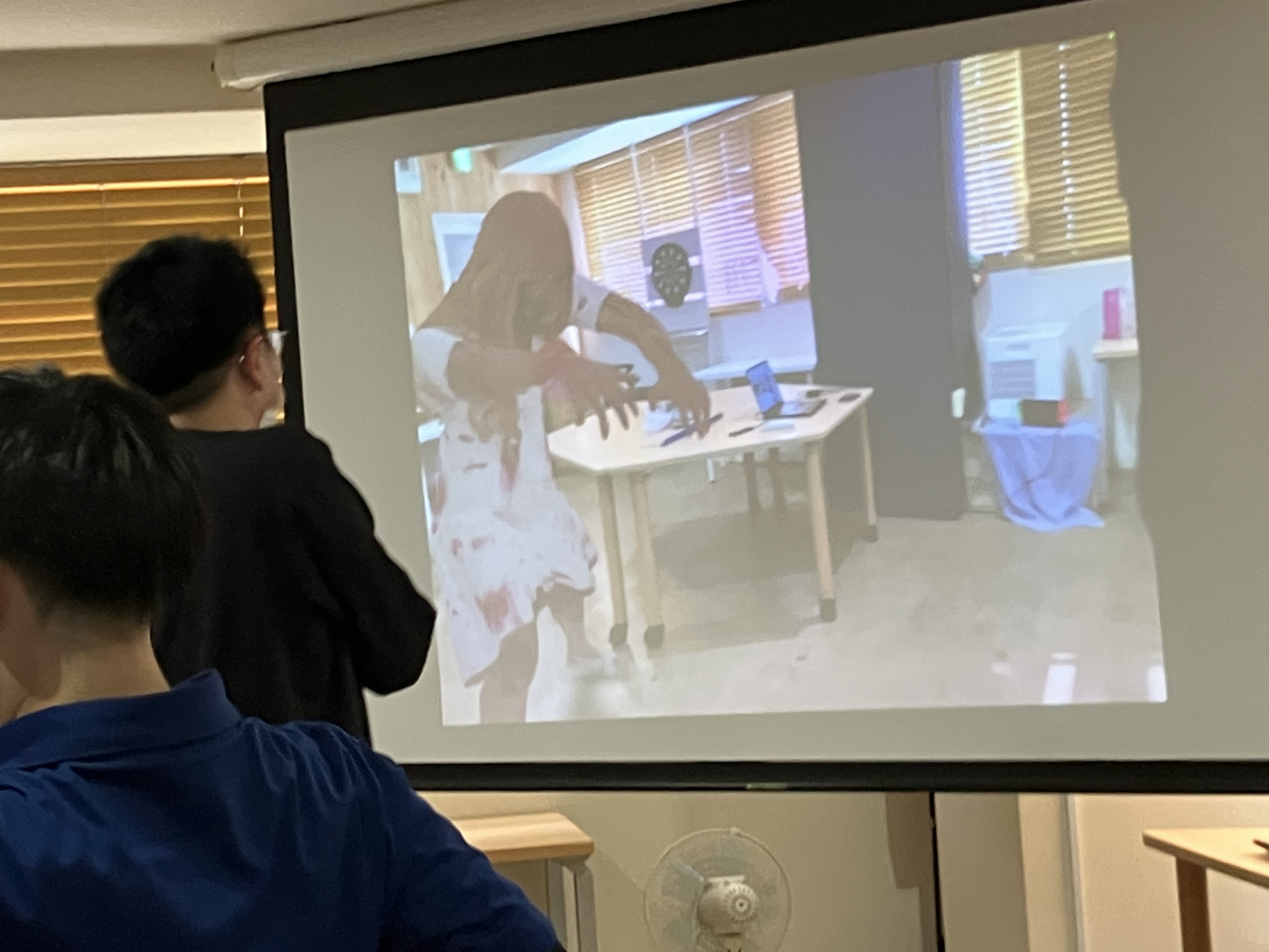 スクリーンの机の横辺りに髪の長いゾンビが映っているのが見えるでしょうか?(ちょっとわかりにくいかな?)