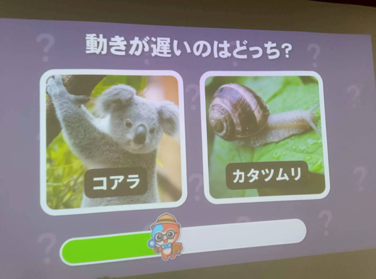 本日のスクリーン前は、20分ほどの棒体操の後『動物2択クイズ』を行いました☆