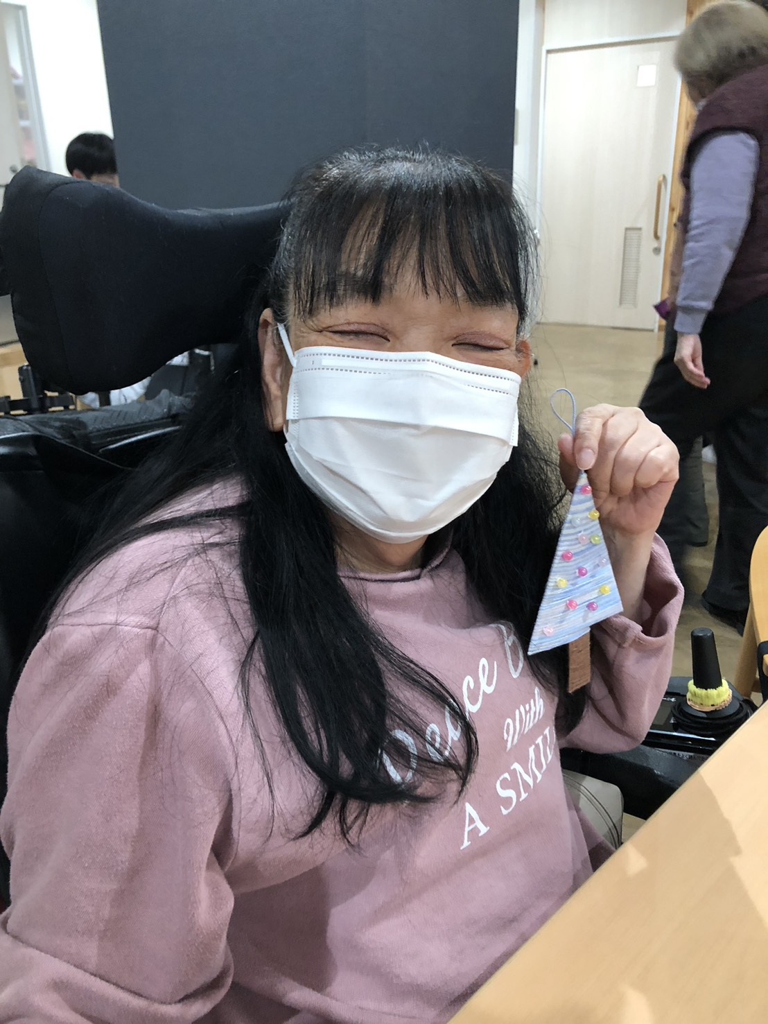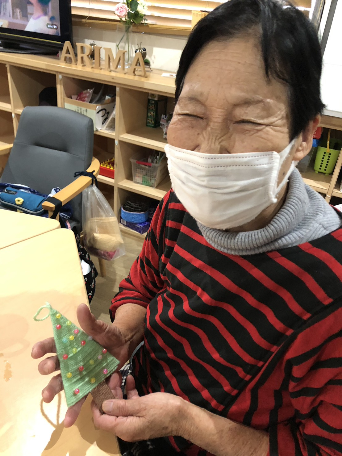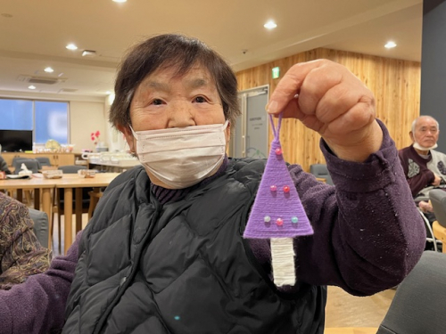 私が一番うれしいのはご利用者の自分で手芸をつくって、(ありがとう)といってくださいました。そして、ご利用者に幸せになりました。