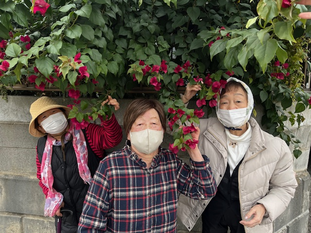 地面を見ながら歩いていると。今度は「これ綺麗ね!」「全然枯れないのね!」「ピンクだったんだけど濃くなって!」