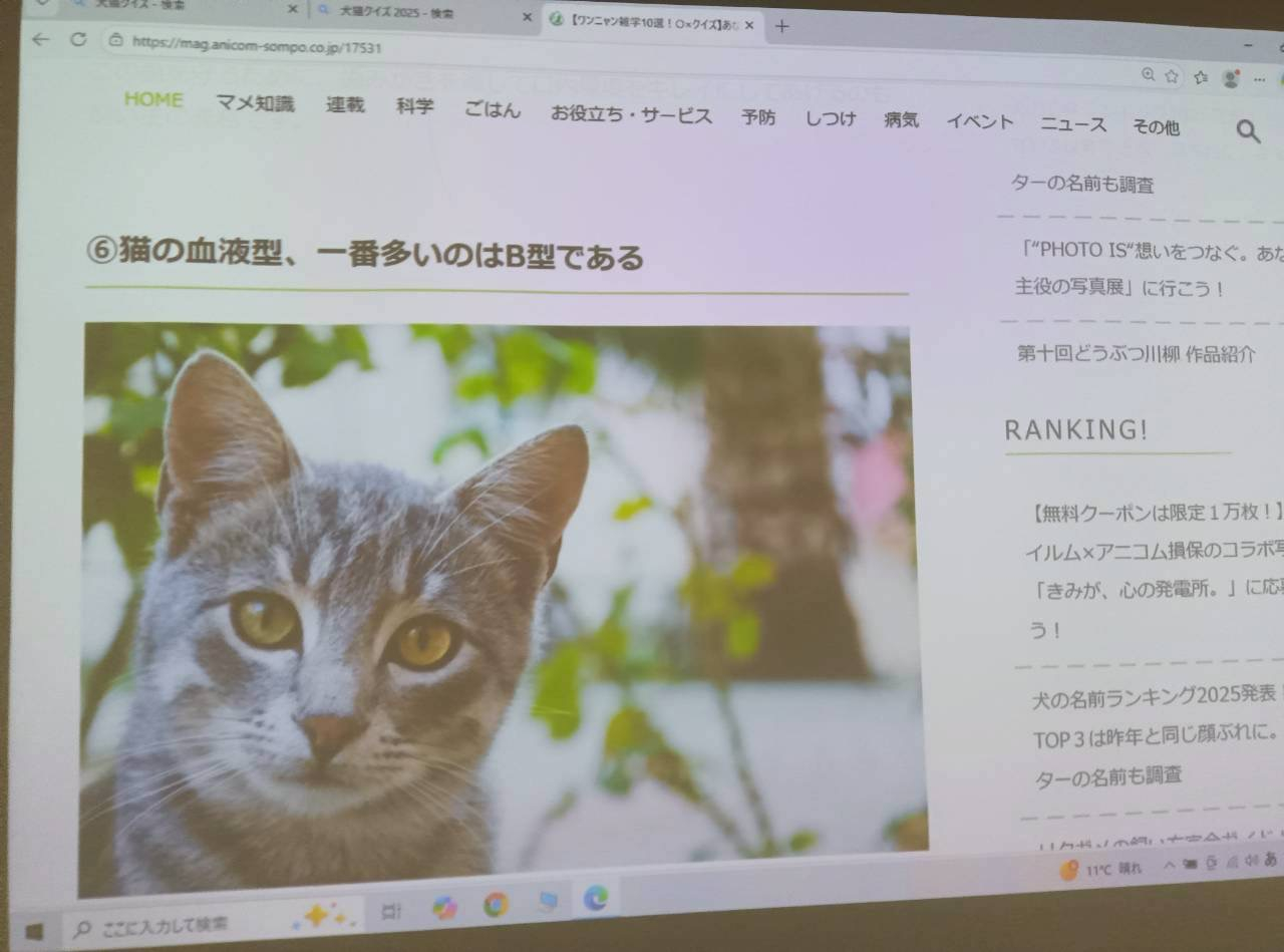 本日は一番身近な犬と猫についてのクイズでしたが、意外と知らないことが多くあり、いろいろと勉強になった本日の午後のスクリーン前でございました☆