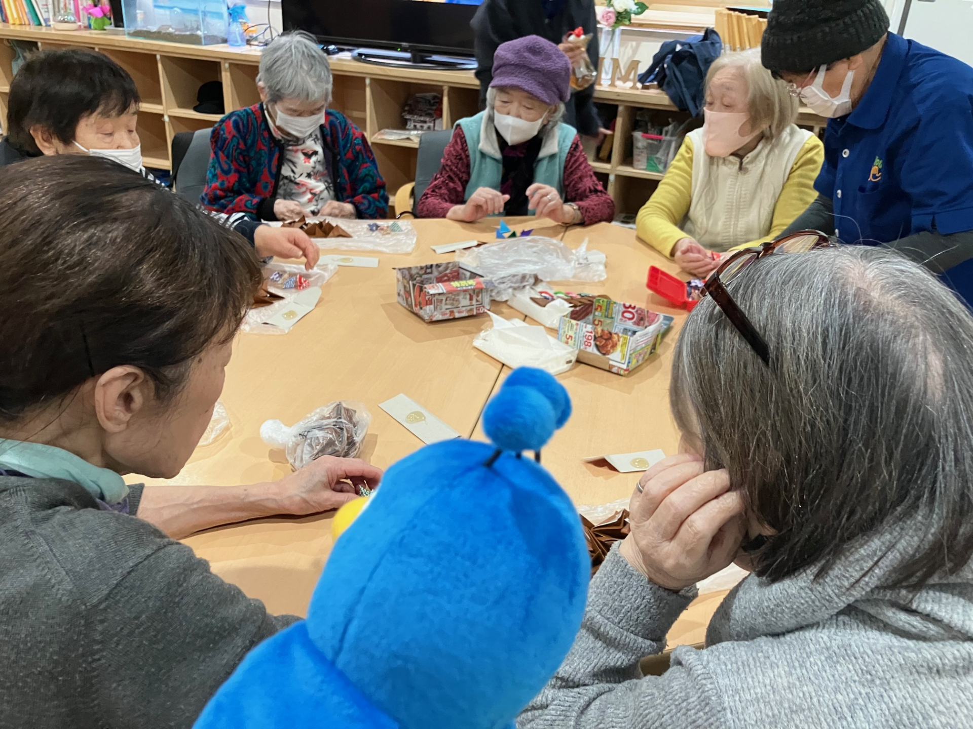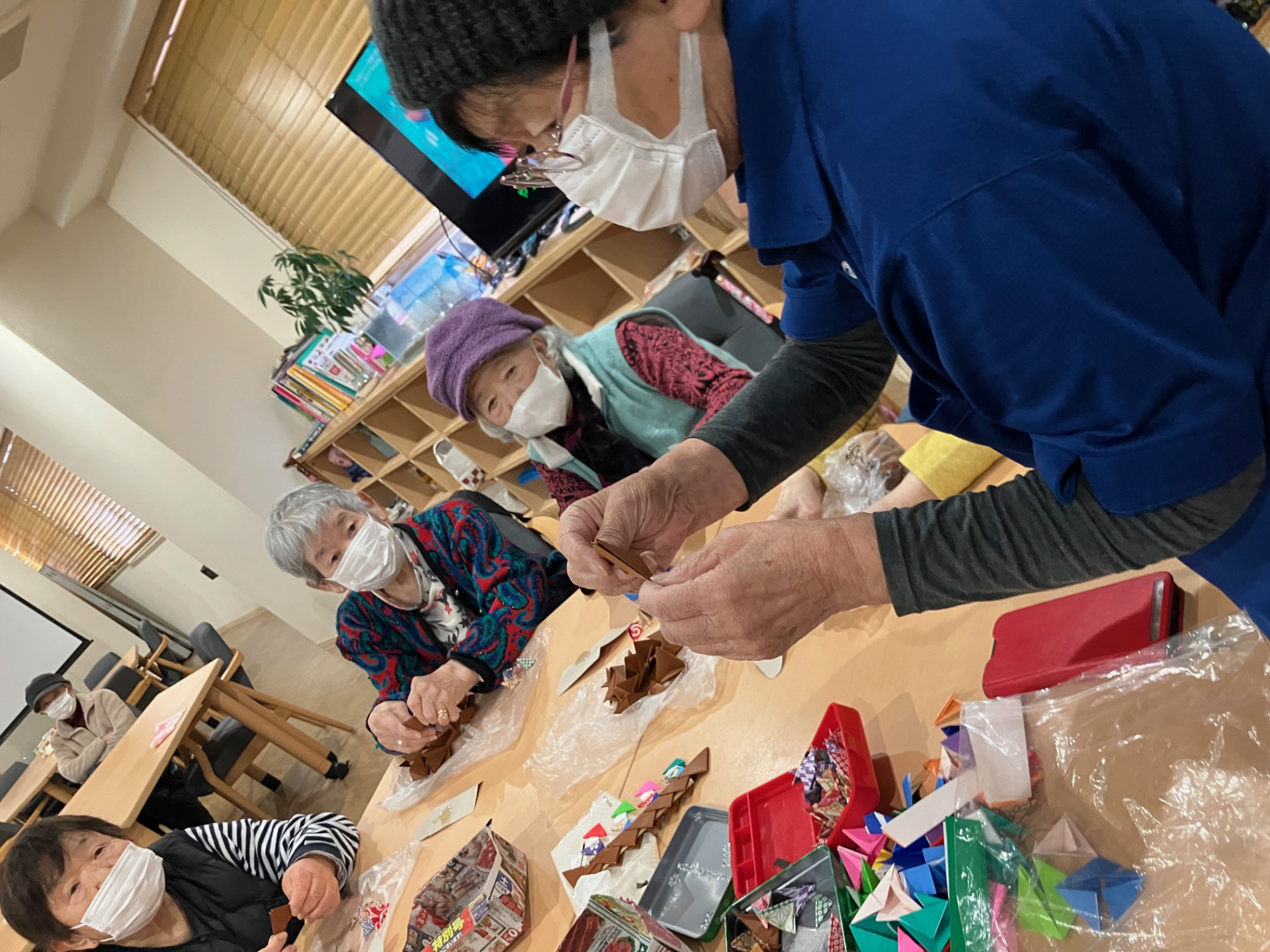 様々な折り紙をみな同じ折り方で折って組み合わせていきます!