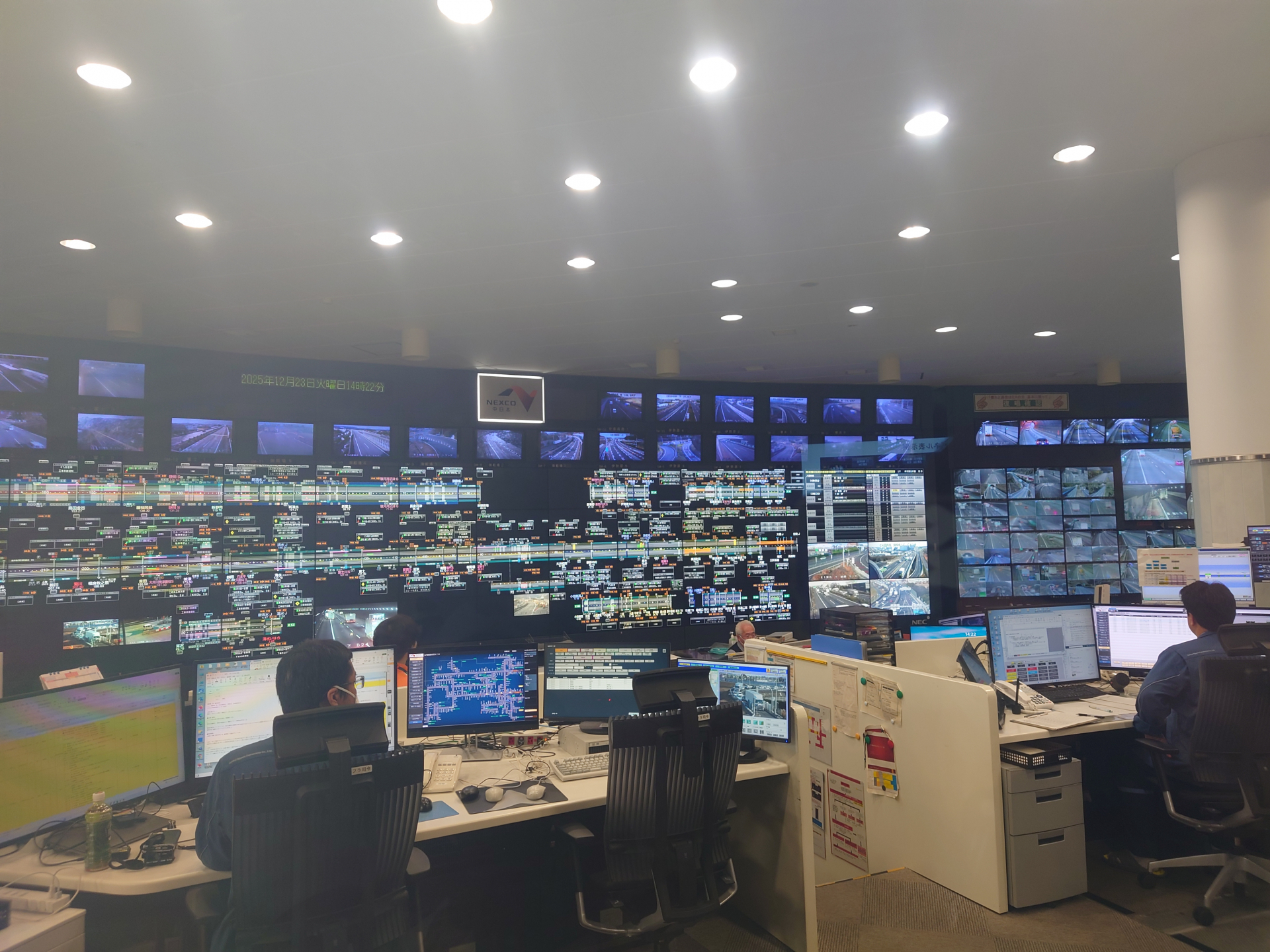 今まさにどの場所で渋滞が起きているか、事故が起こってしまったか、高速道路上に落とし物がないかなどがひと目で分かり、管理しているこの場所が一番みなさん興味がおありのようで長い時間いました(;^_^