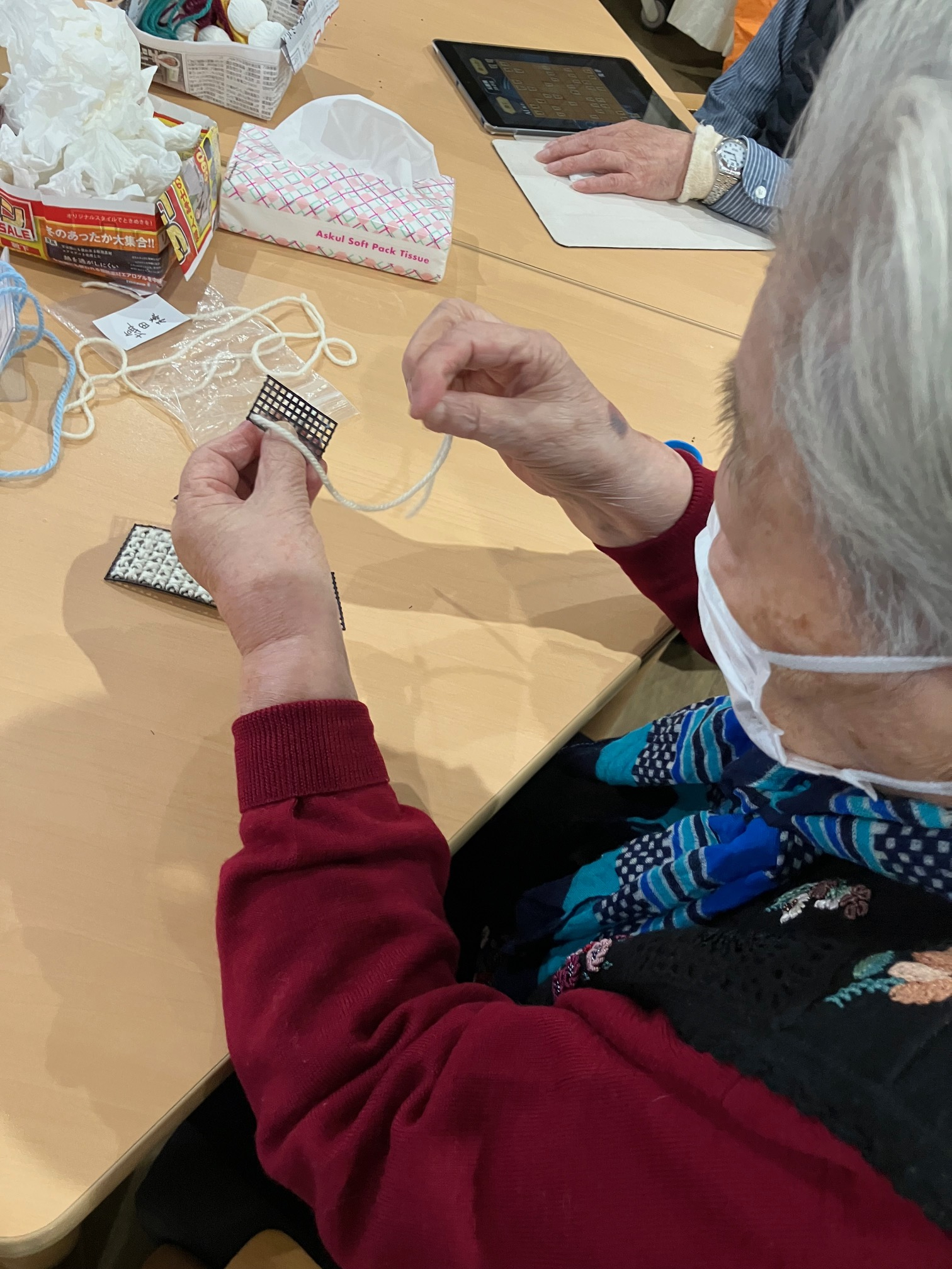 本日は鉢底ネットでミニカバンとポーチ、コースター作りを始めました🙌