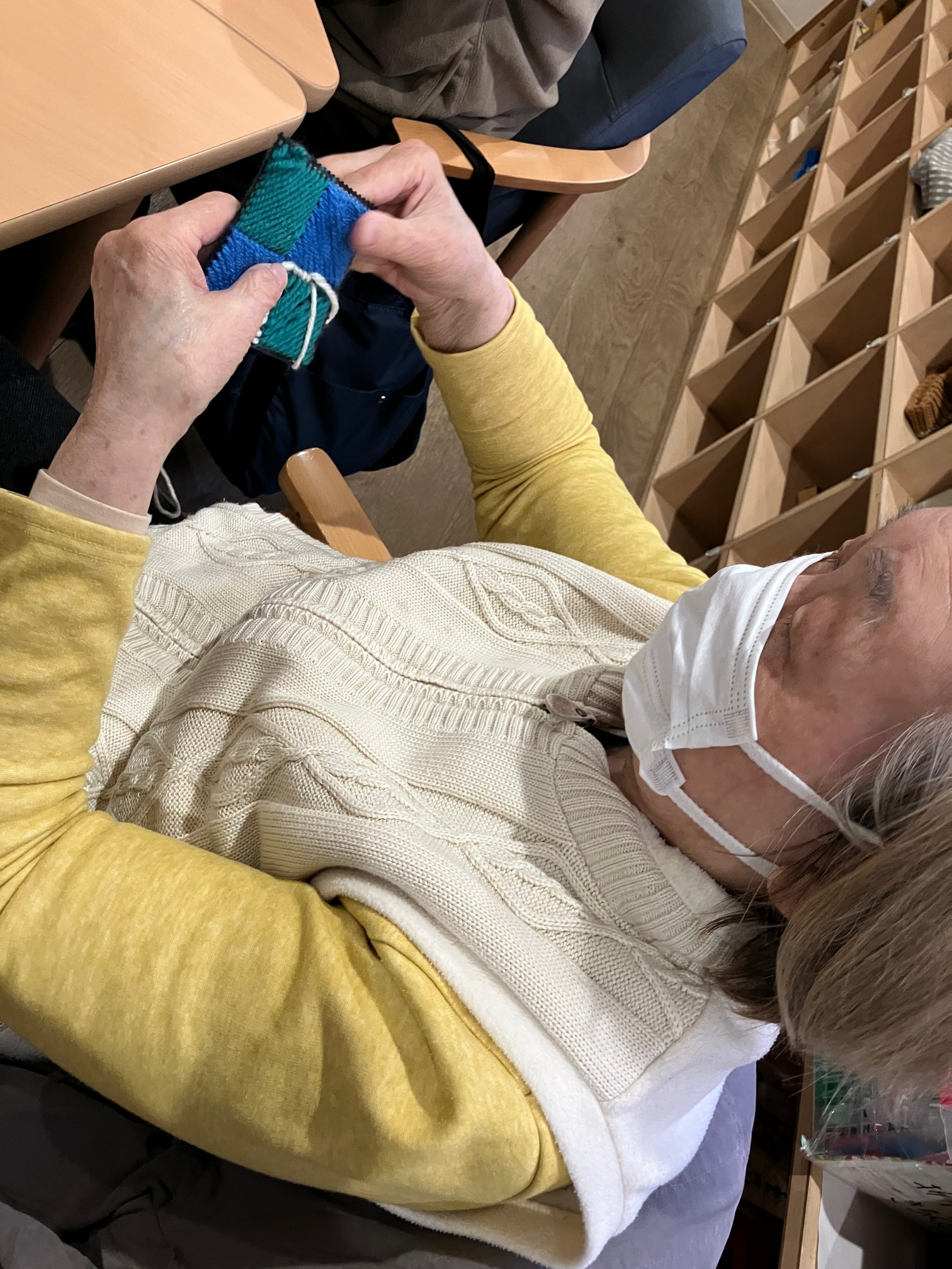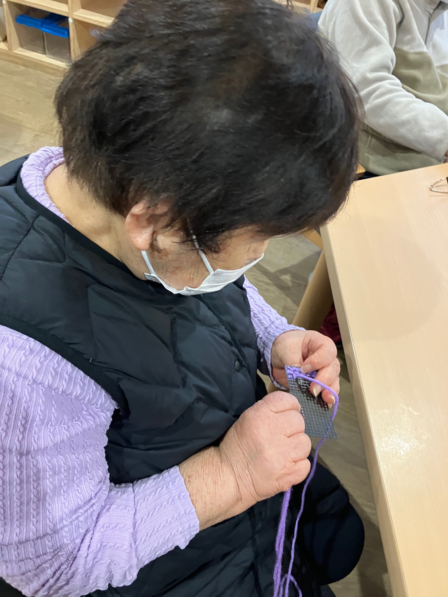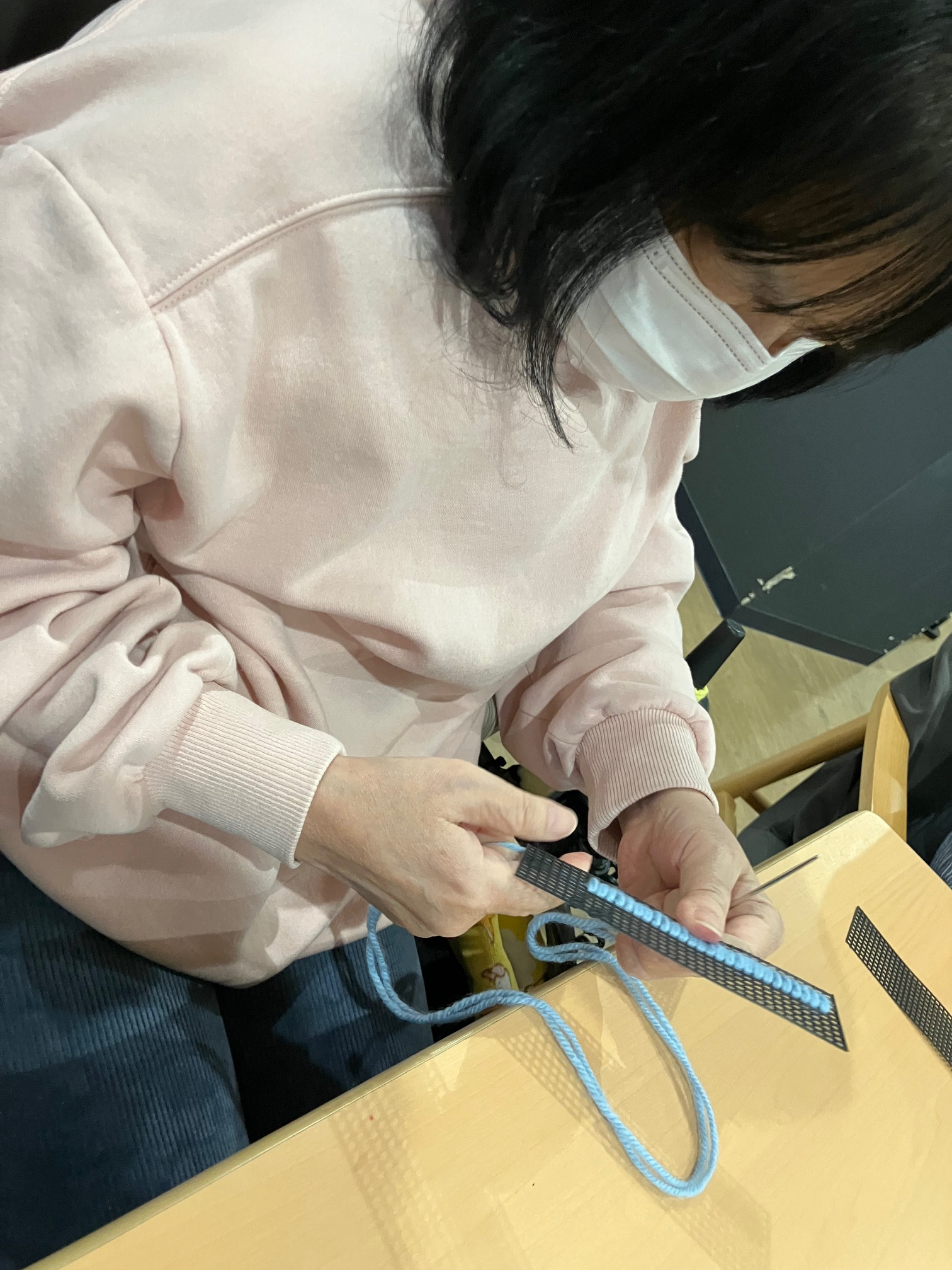 お花柄のように編み込んでいきます。編み目が小さいので結構難しい・・・