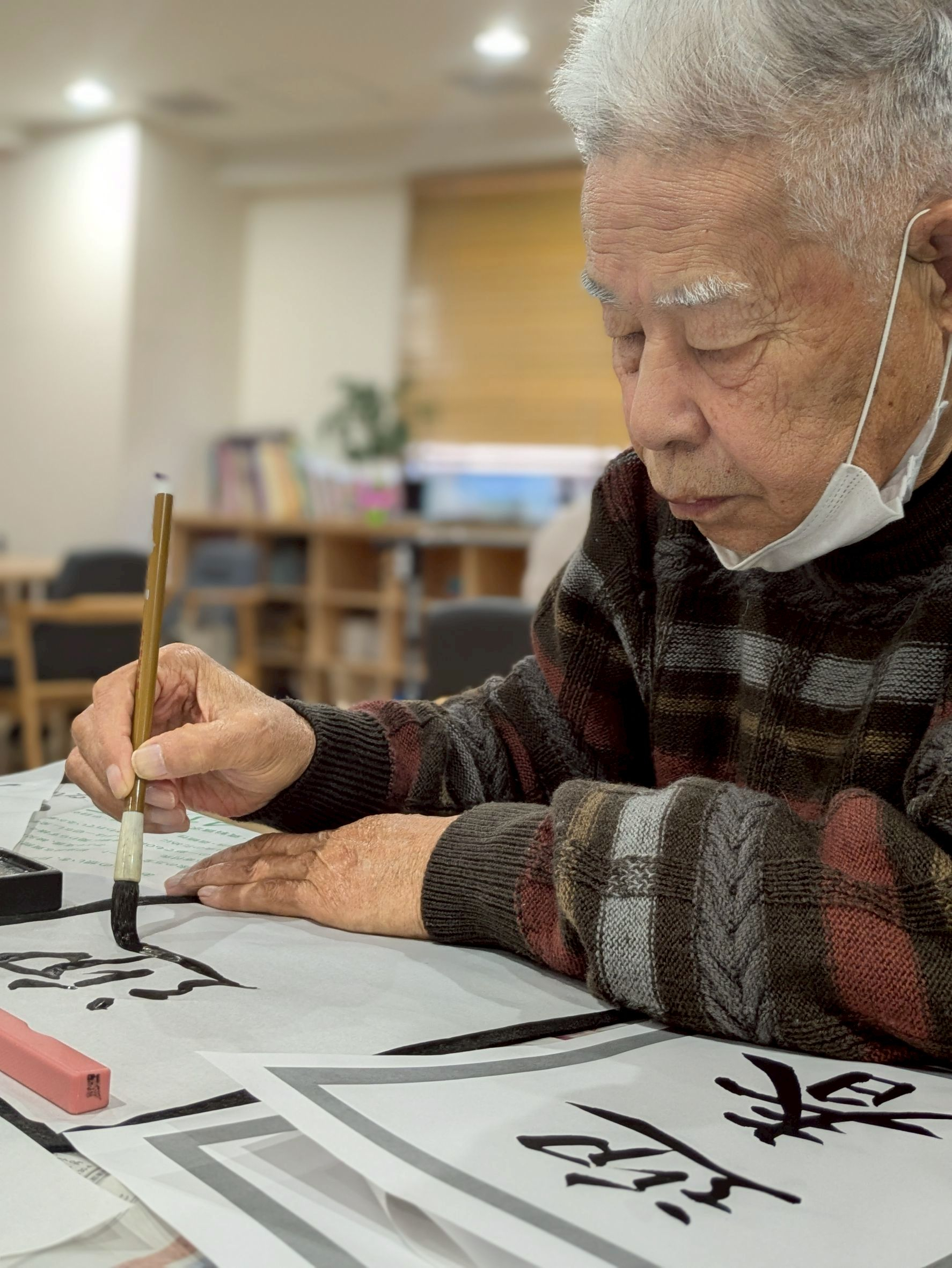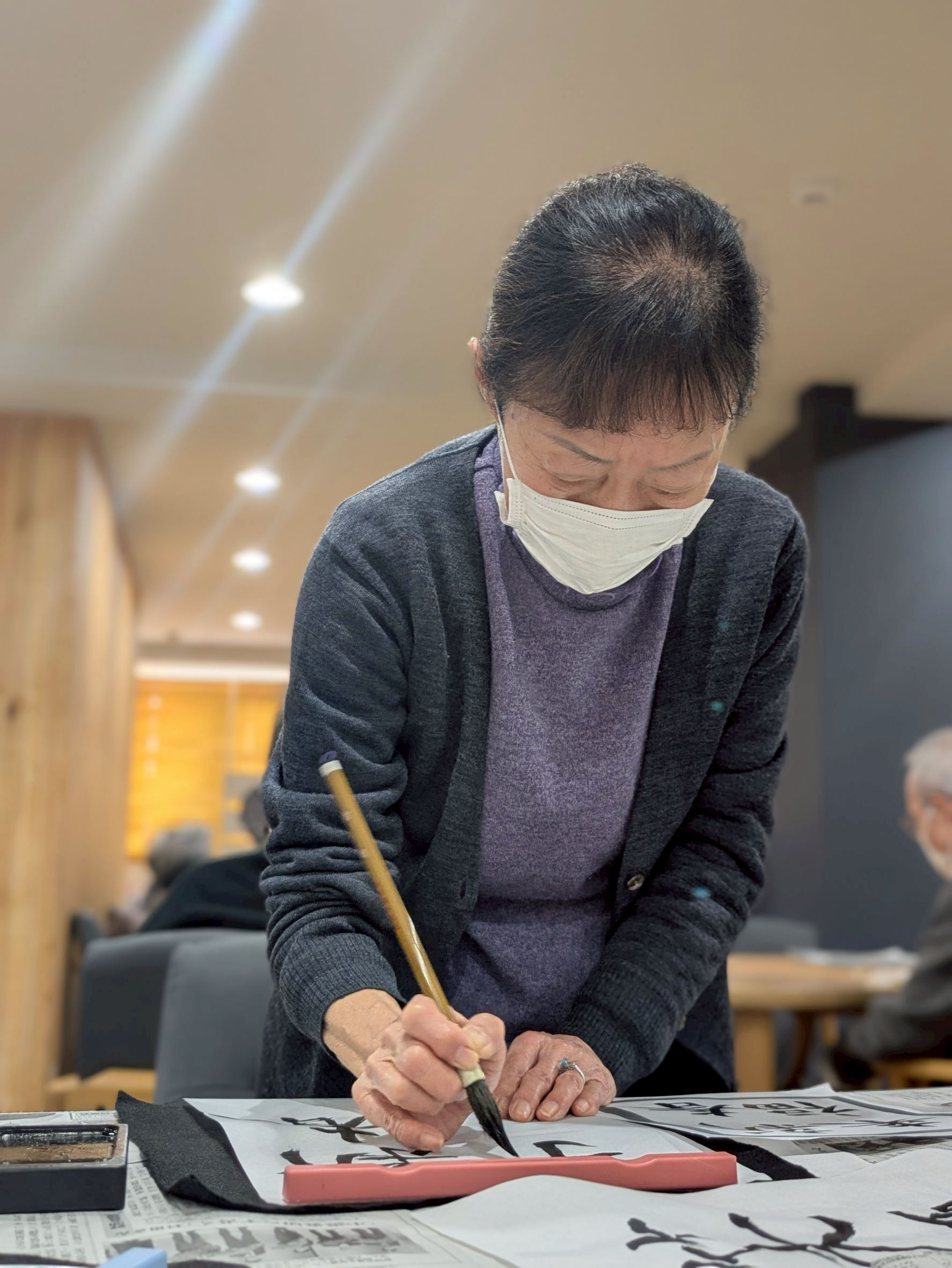 筆を持つと、みなさんとても集中して真剣なお顔で半紙にむかいます・・