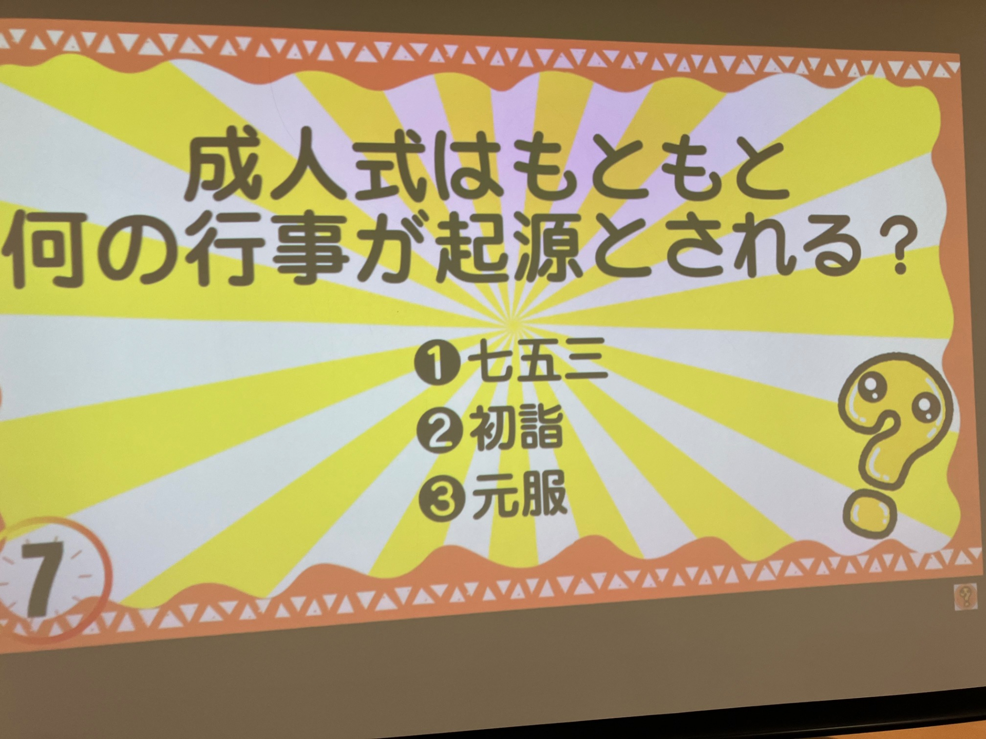 ということで、本日は成人にまつわる雑学クイズを行いました。