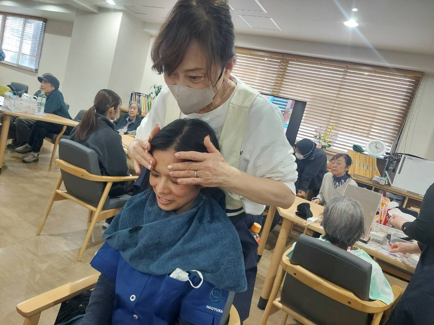 いつもなら他の方がやられている間、その他のみなさんはスクリーンや体操など、別の事をして楽しまれているのですが、本日は珍しく、やられている方を他のみなさんが見守る♡というスタンスで行っていきます( *´艸`)