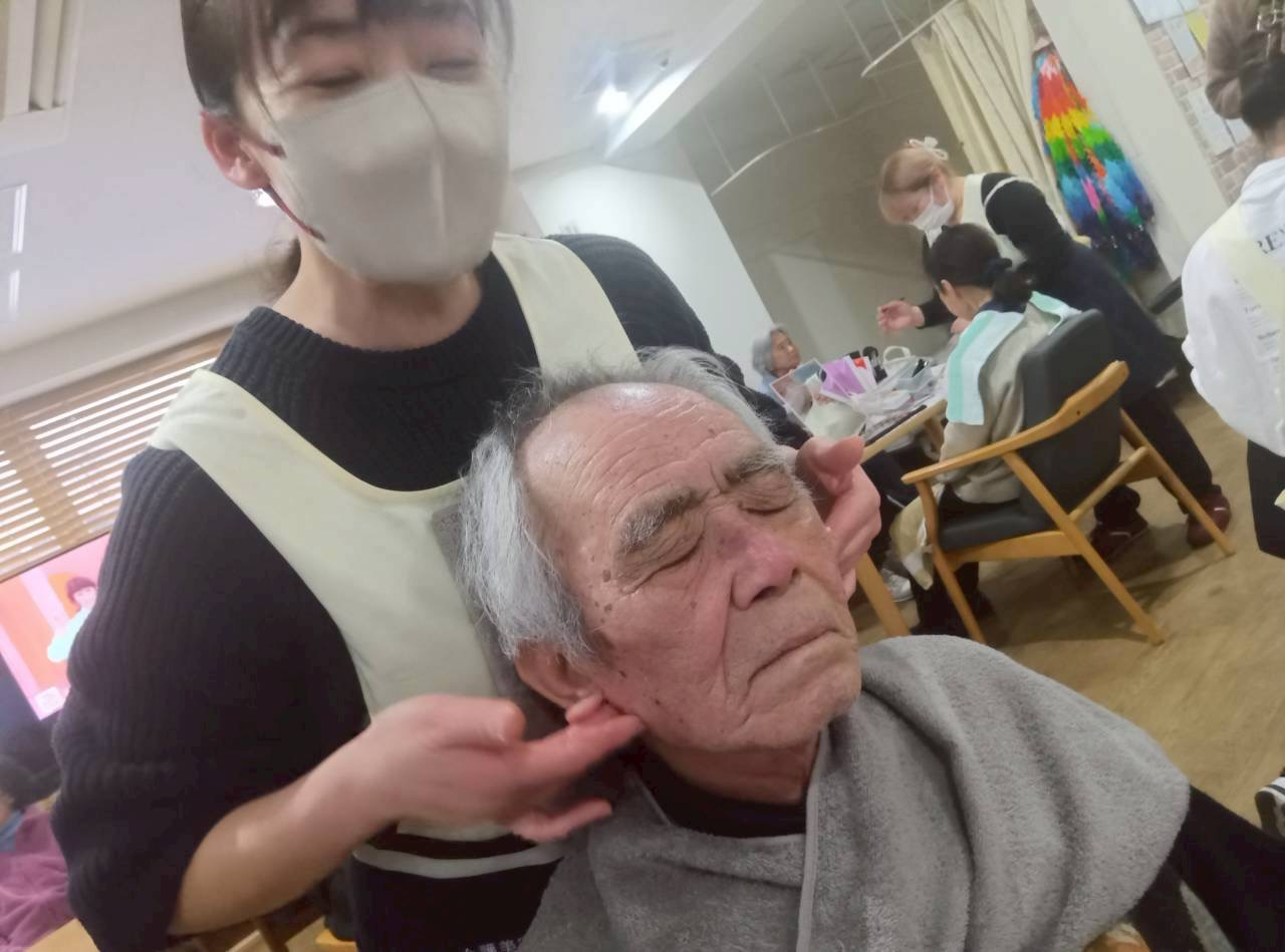 介護美容研究所のみなさんには、毎回『ハンド、フットマッサージ』、『フェイススキンケア』、『ネイル』、『メイク』などをしていただき、ご利用者のみなさんを笑顔にしてくださっています(*^-^*)