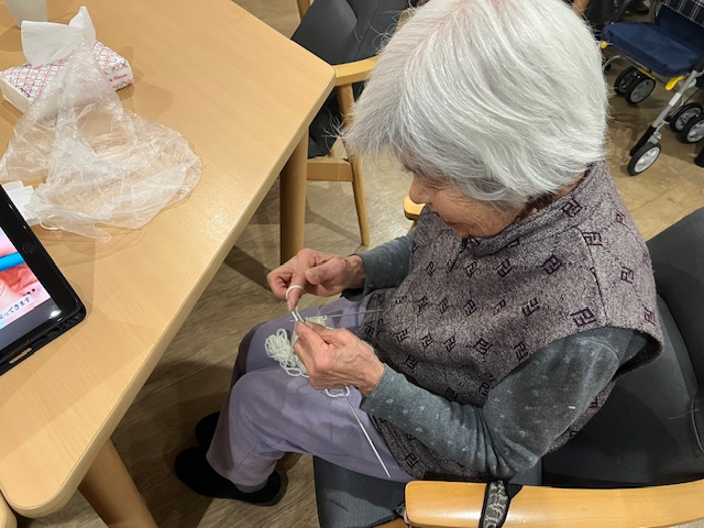 編み物ブームは冷めやらぬ中本日もミニバックやマフラーのパーツを作る方が!