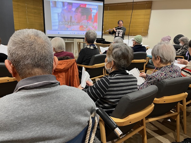 毎月恒例になっているフルート演奏ですが「月二回来てもいいのよ!」というお言葉も!