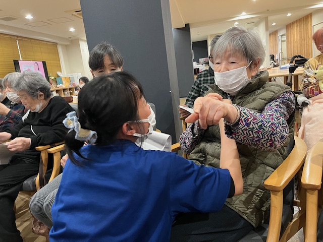 職員と手を取ってリズムに乗ったりと!