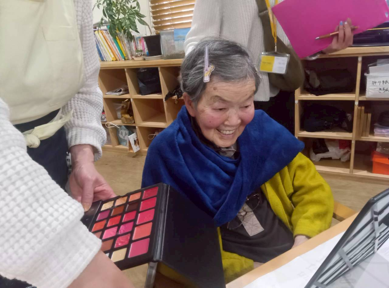 また、お手伝いしてもらいながら、眉を描いてみたり、チークを塗ってみたりご自分でも挑戦されていらっしゃいます(*^-^*)