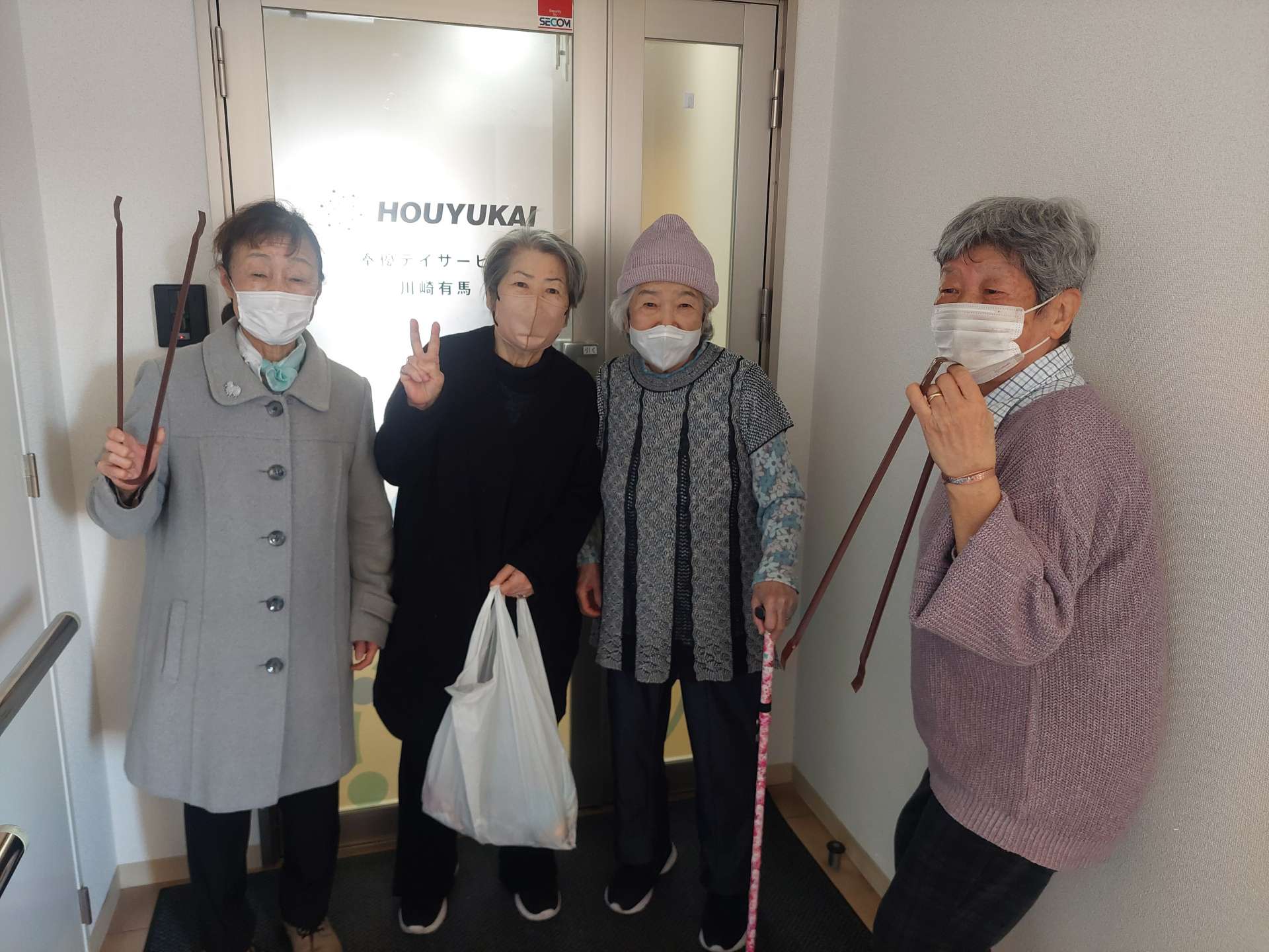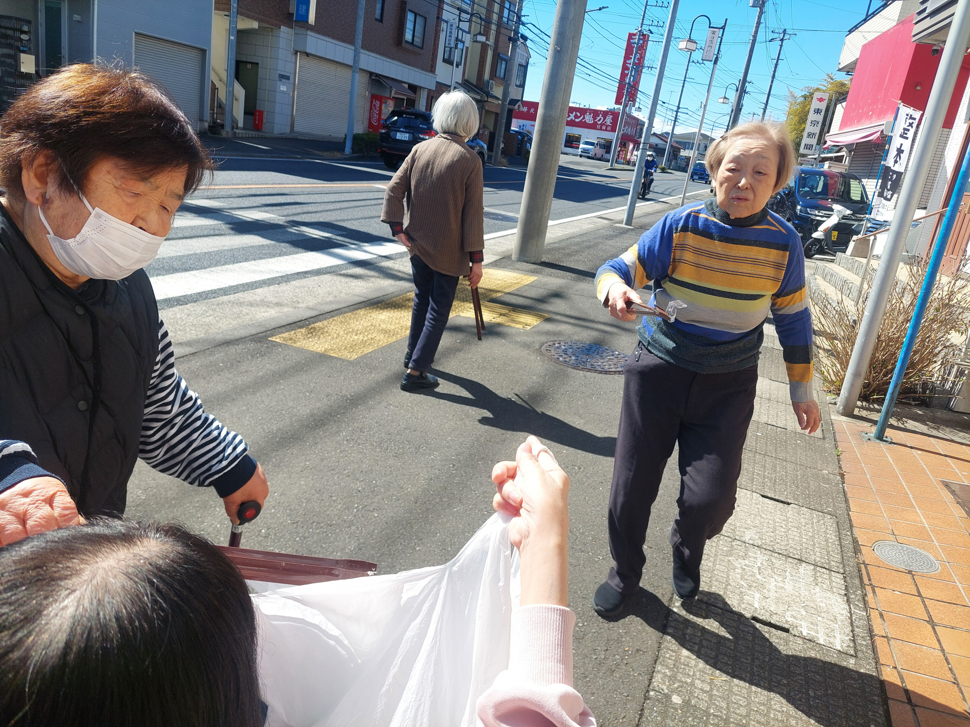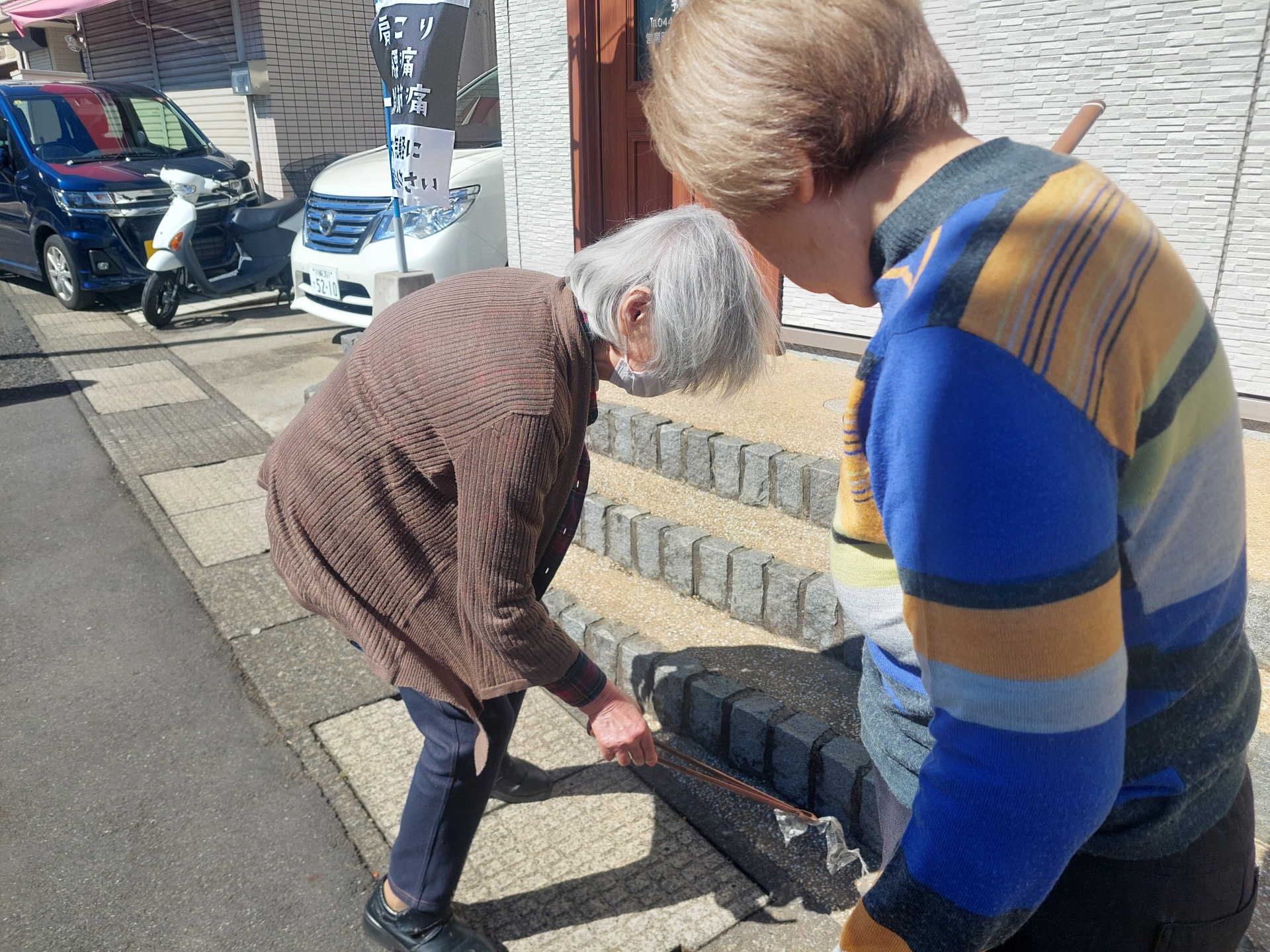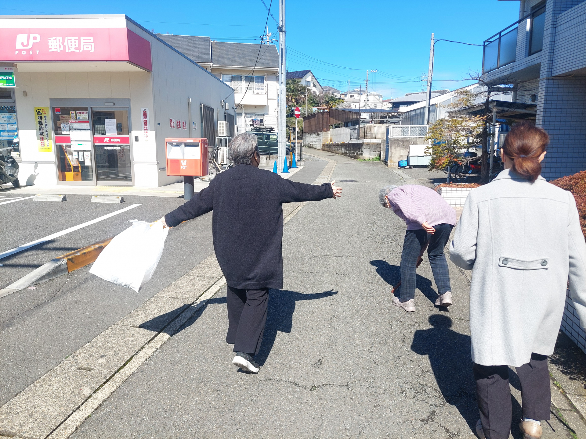 いつもは屋外歩行訓練としてデイの周りを歩いていますが、今日はひと味違います。