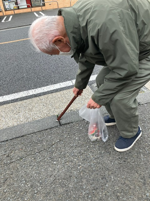 ゴミ袋は3つ、ゴミを拾ったらT氏に手を伸ばして渡す。あまりに