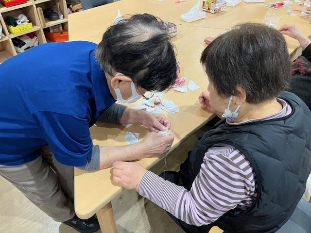 「ここを縫ったらいいのかな」「これがうまく出来ないのよ」とお隣の方と話しながら