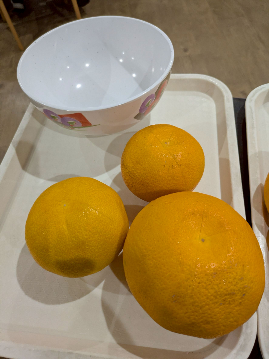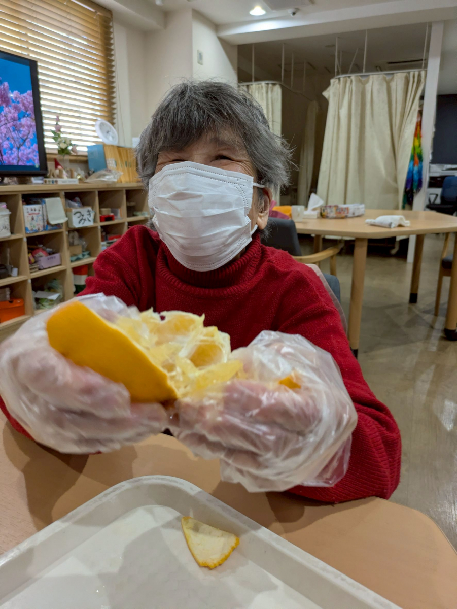 先週はいただいた八朔を使って、みなさんで協力して「はっさくわらび餅」を作りました♪