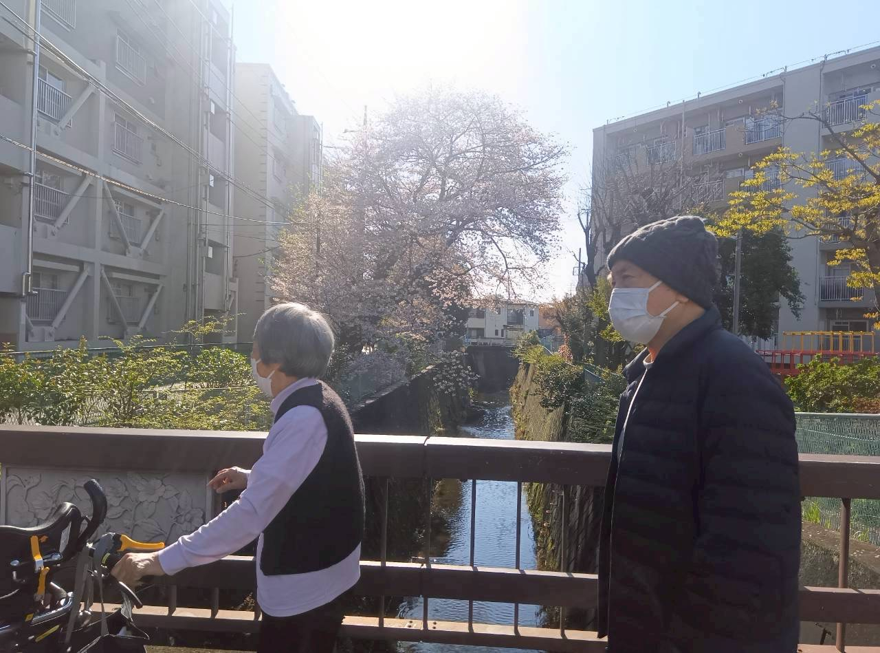 みなさんの願いが通じたようなので、『桜、見納めに行っちゃう?』ということで、外出歩行訓練に出発(^O^)/