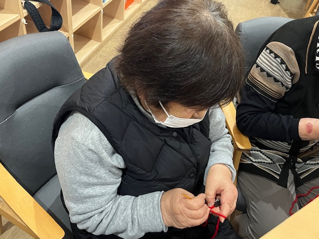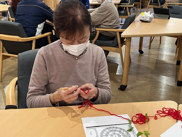 編み物に慣れた方はお隣さんに教えておりました!