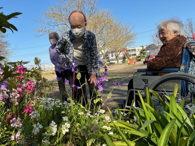 「このお花もかわいらしいね~」「なんてお花なんだろうね~?」