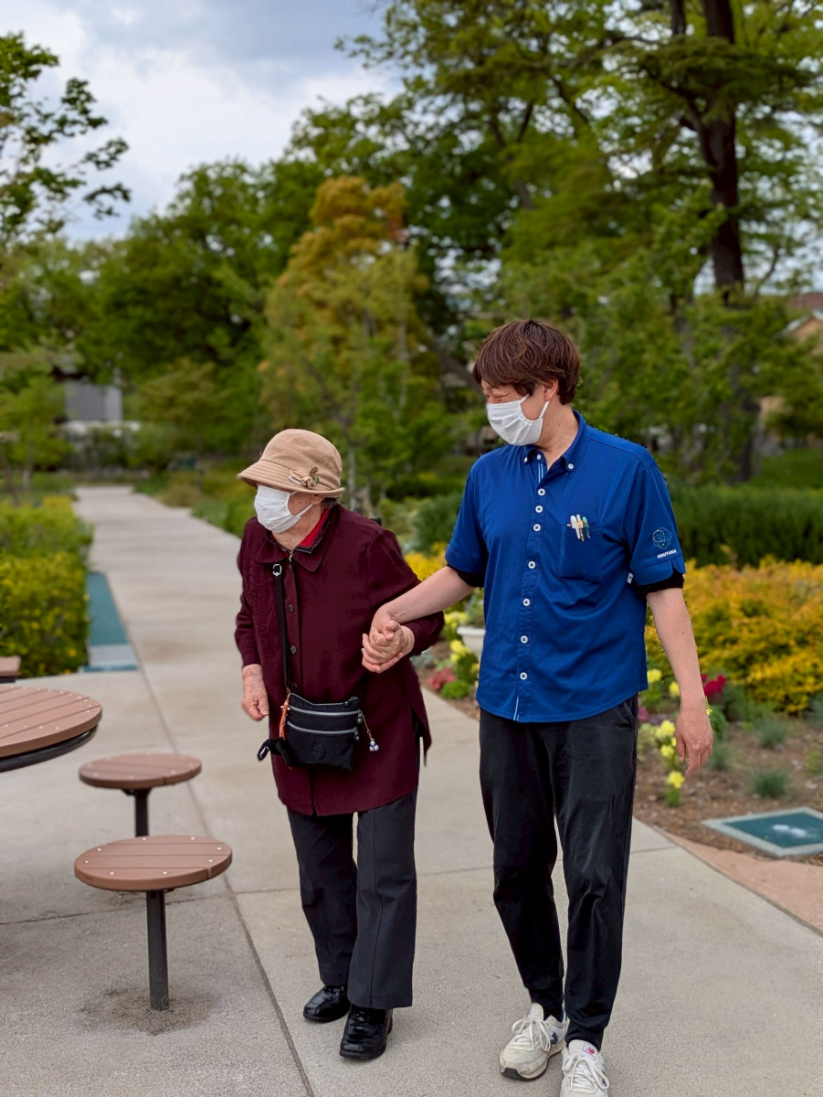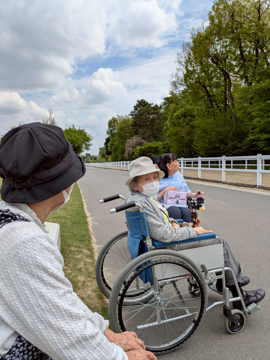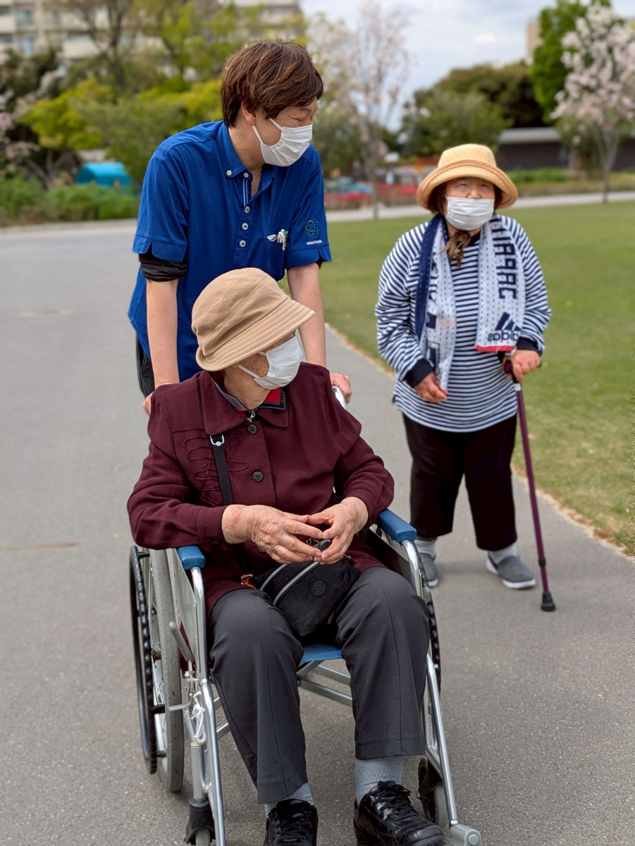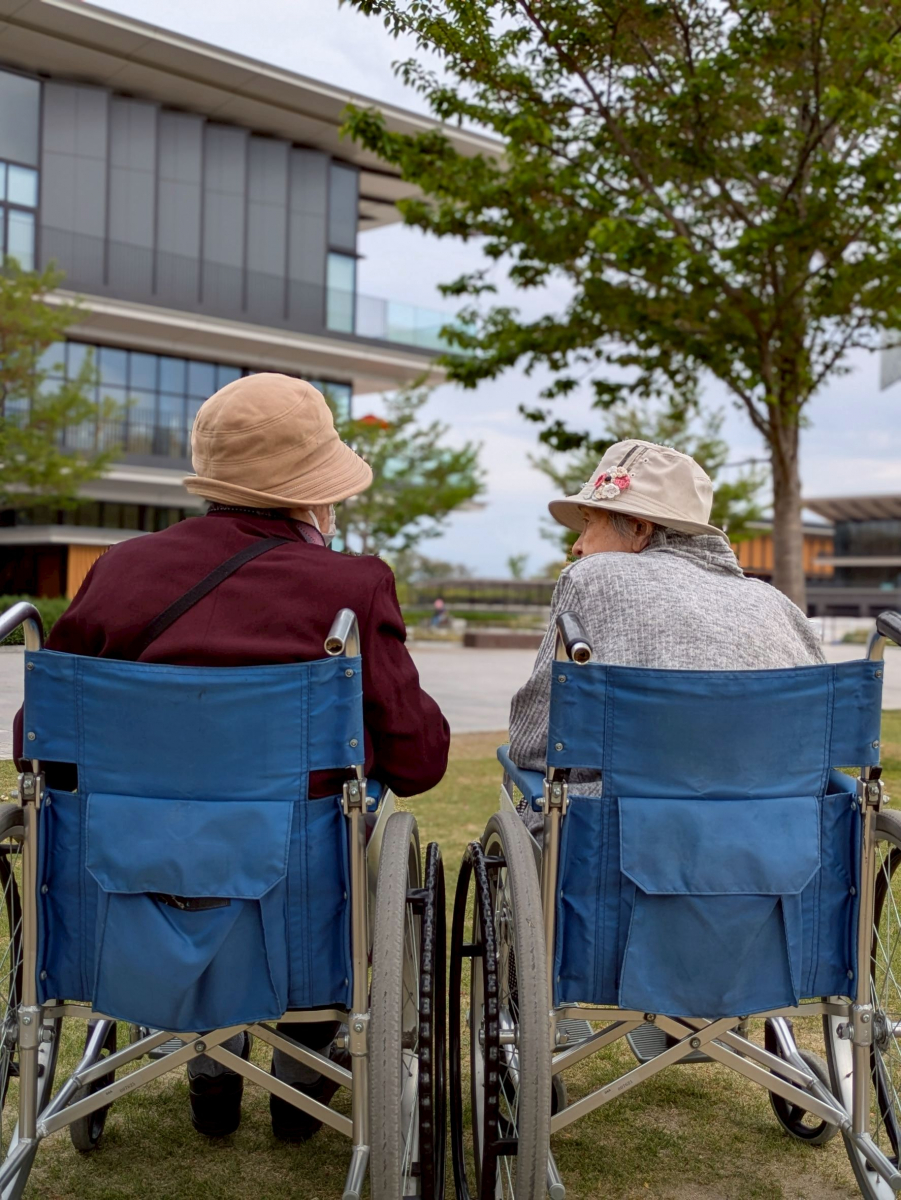 歩行が不安定な方は、園内は安全を考慮し車椅子での移動です。