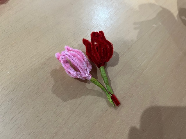 見本の動画は小さなチューリップを製作していたので、手のひらサイズのチューリップを!