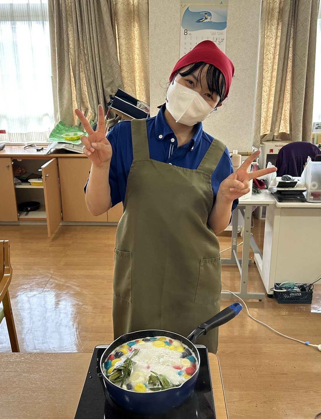 本日は職員のバイファーンさんの故郷「タイ」のおやつ『ブアローイ』を作った報告です!