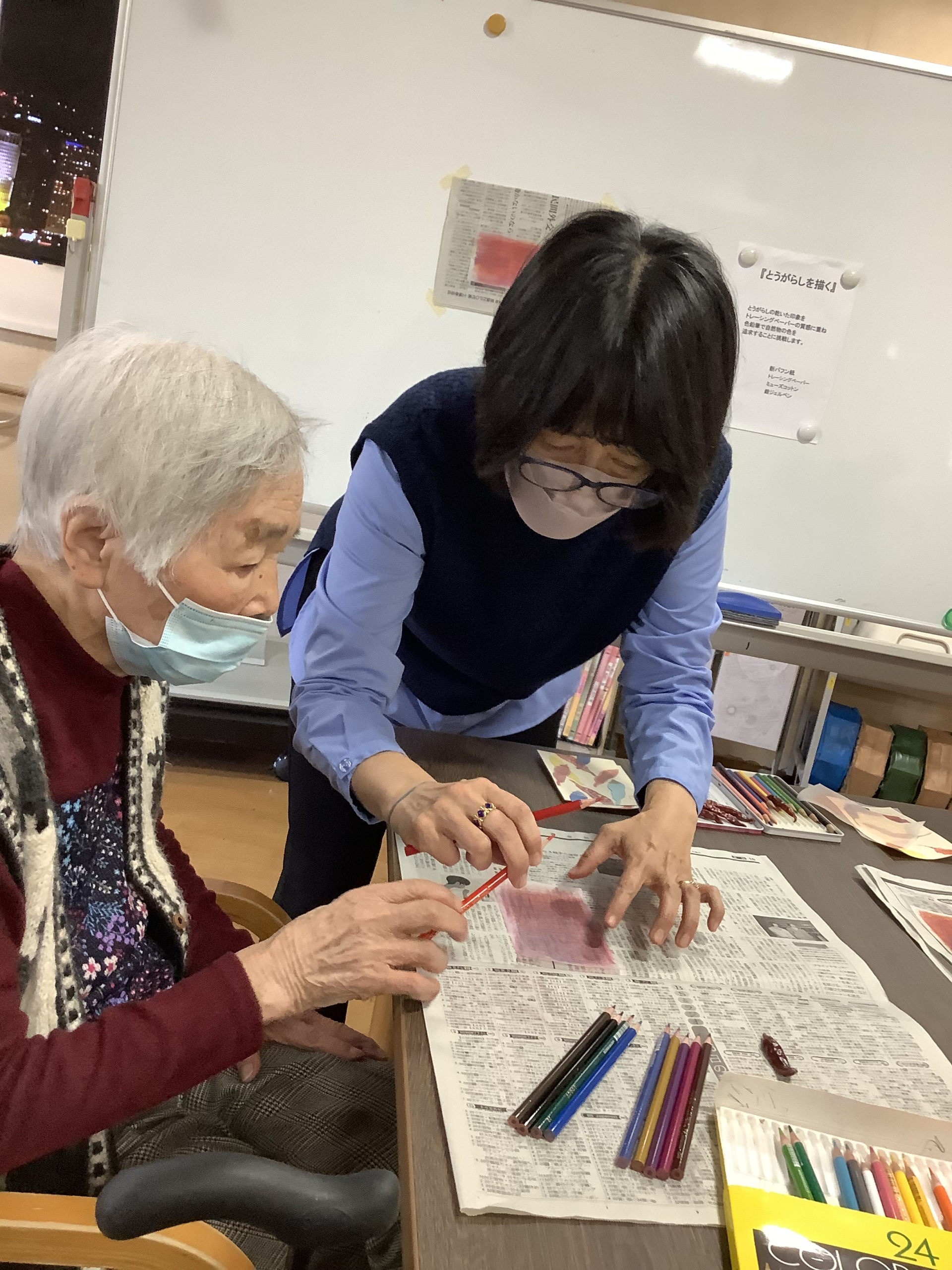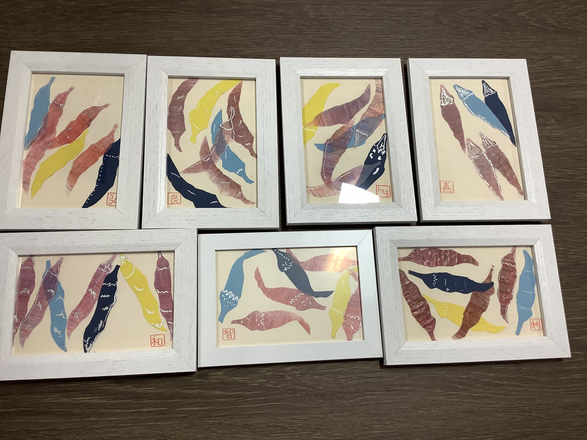 まずはトレーシングペーパーに唐辛子の色を塗っていきます。