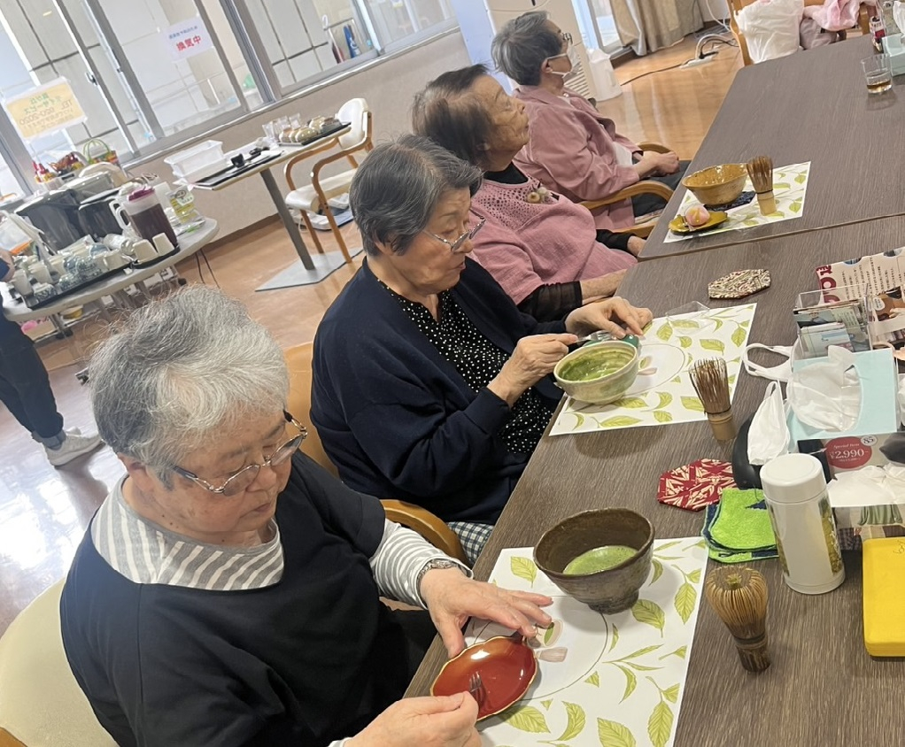 お茶を点てる経験のある方がいらっしゃるため、職員も時折教わりながら( *´艸`)