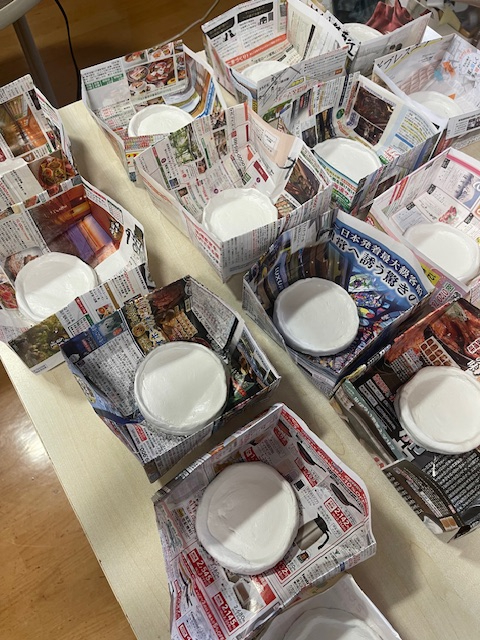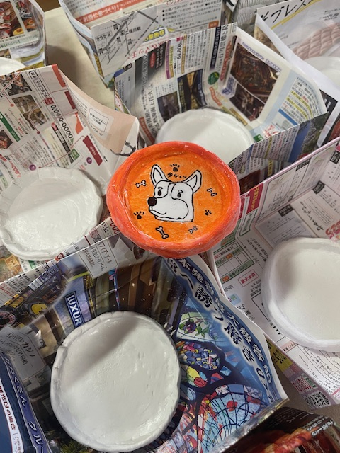 先月から始まった紙粘土工作。とても好評で、今月も開催されました。今回は、2回で完成する予定です。